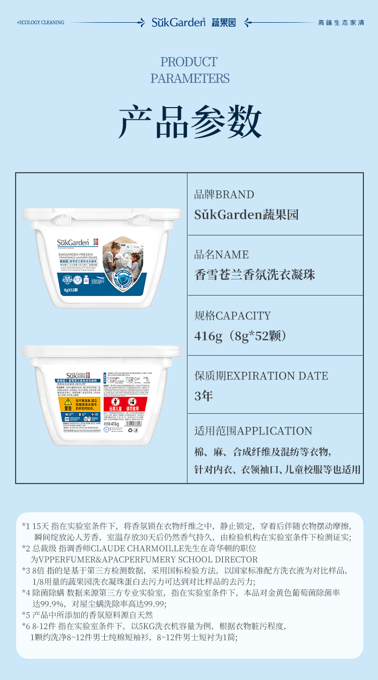 商品名称:SukGarden/蔬果园香雪苍兰香氛洗衣凝珠维多利亚玫瑰与染井吉野樱花长效留香珠644g