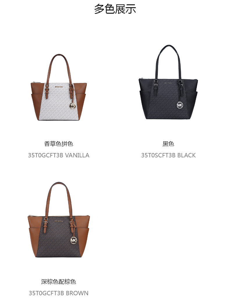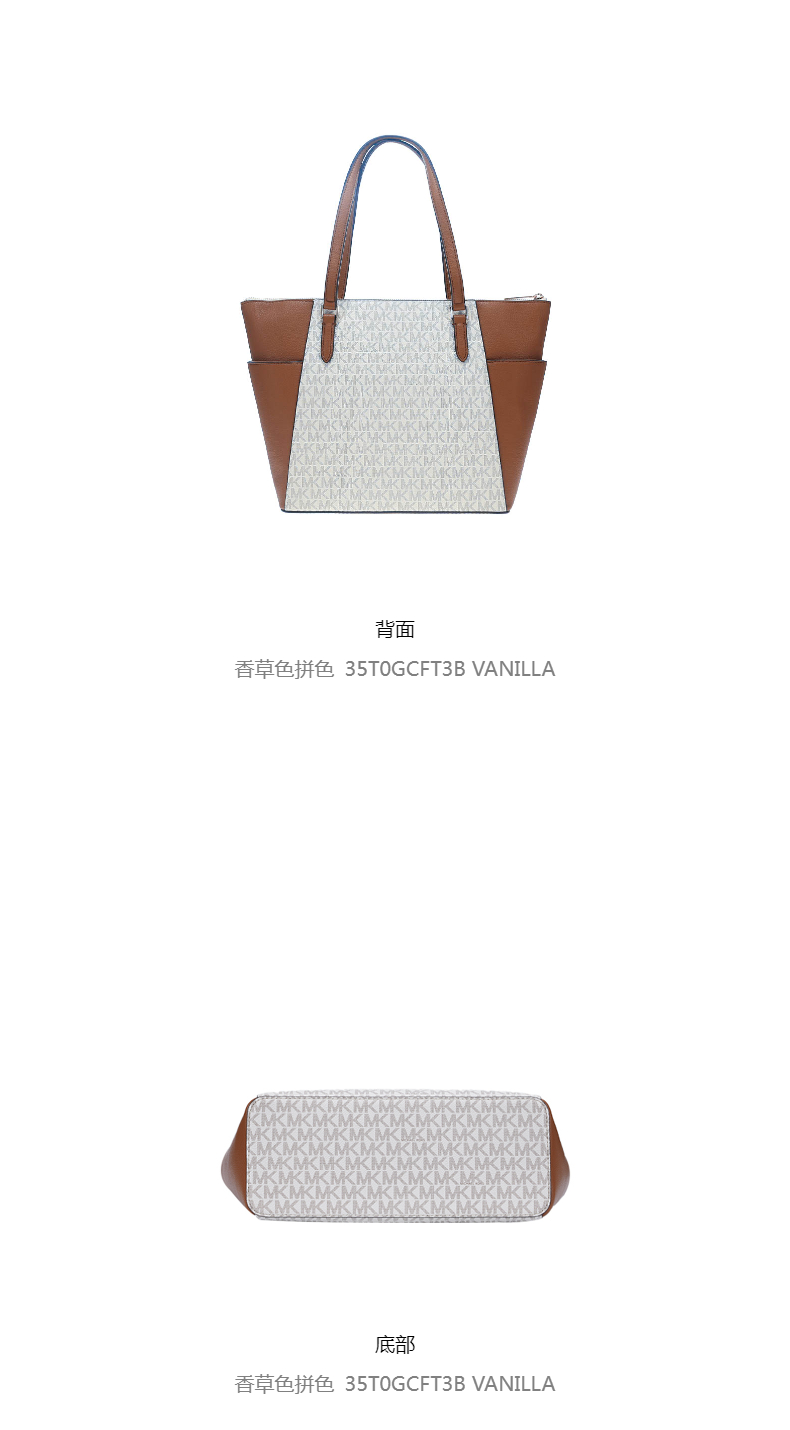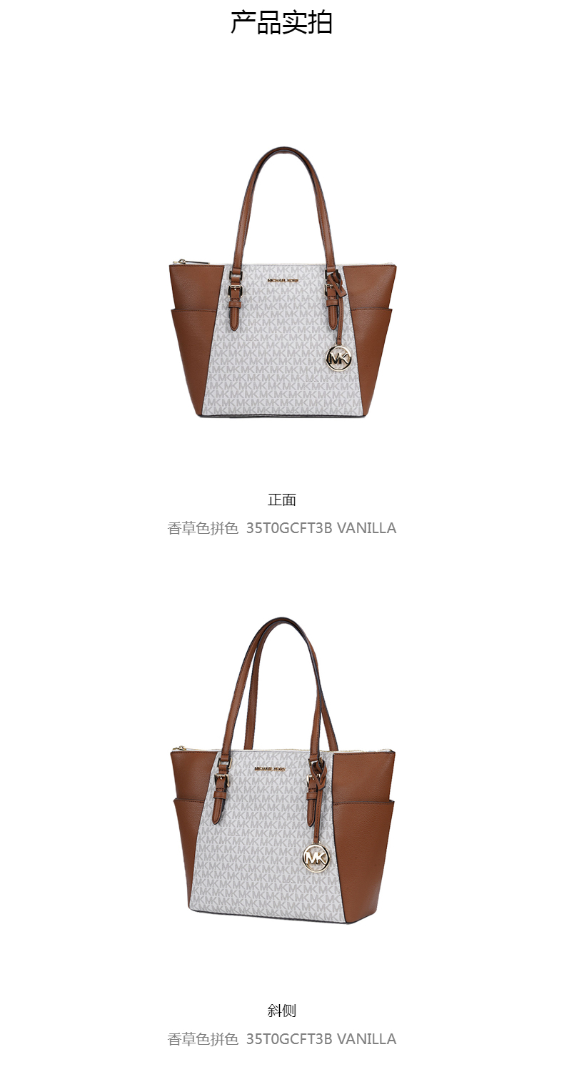 商品名称:Michael Kors 奥莱款 CHARLOTTE大号PVC配皮女士牛皮革单肩手提托特包 35T0GCFT3B VANILLA