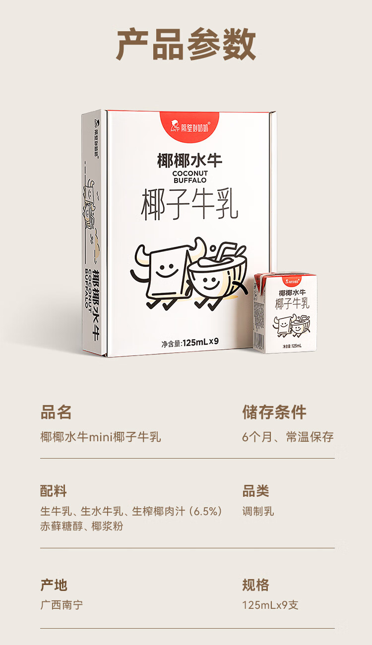 商品名称:隔壁刘奶奶椰椰水牛mini椰子牛乳整箱125ml*9盒