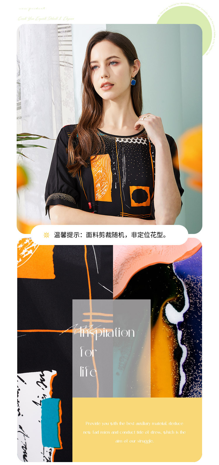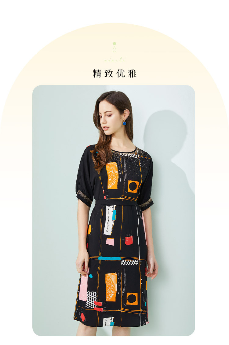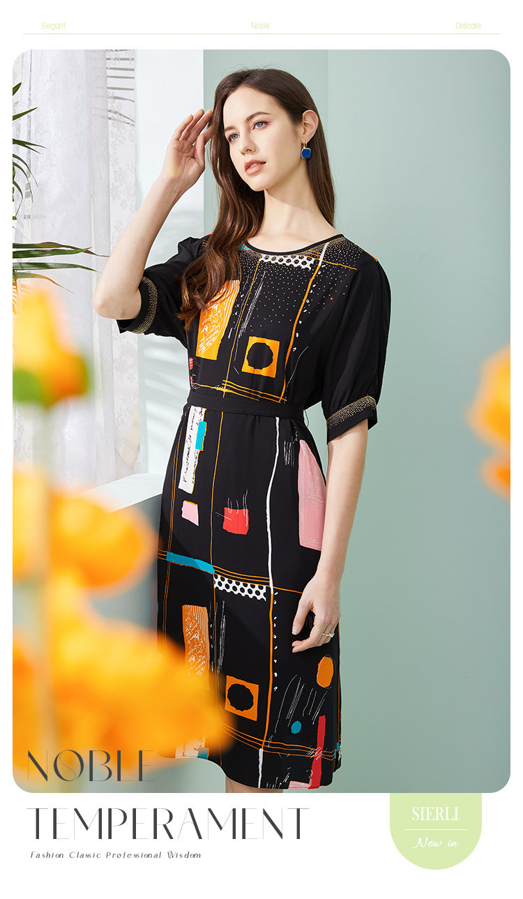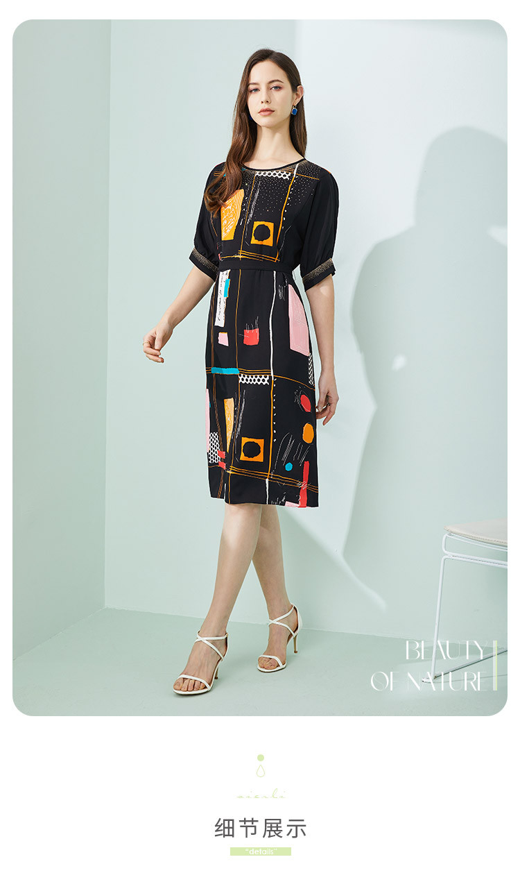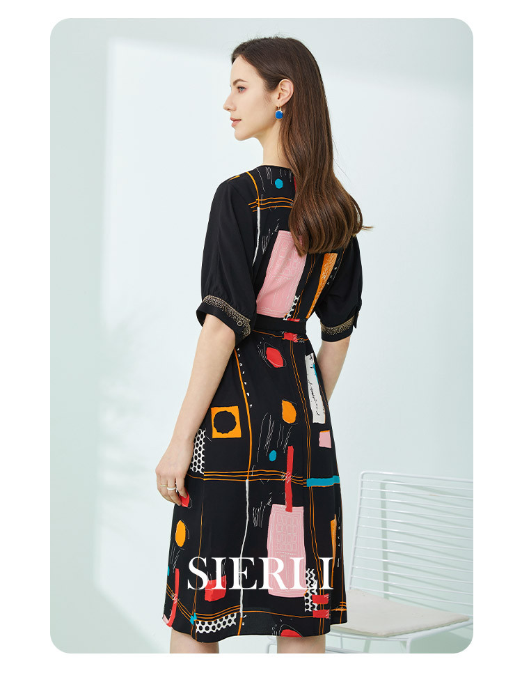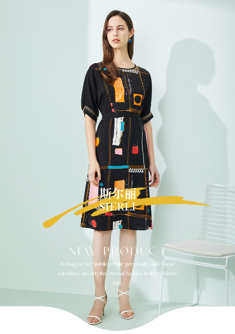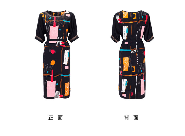 商品名称:商场同款秋季撞色几何印花宽松圆领短袖连衣裙 439967
