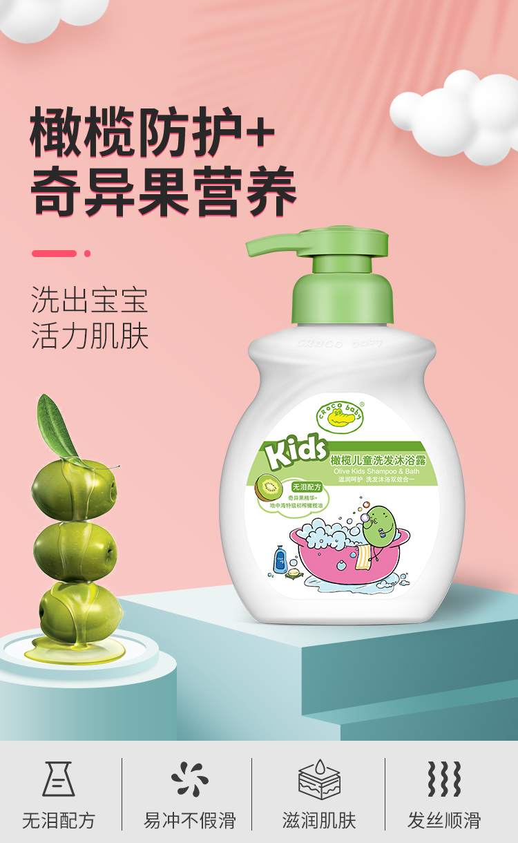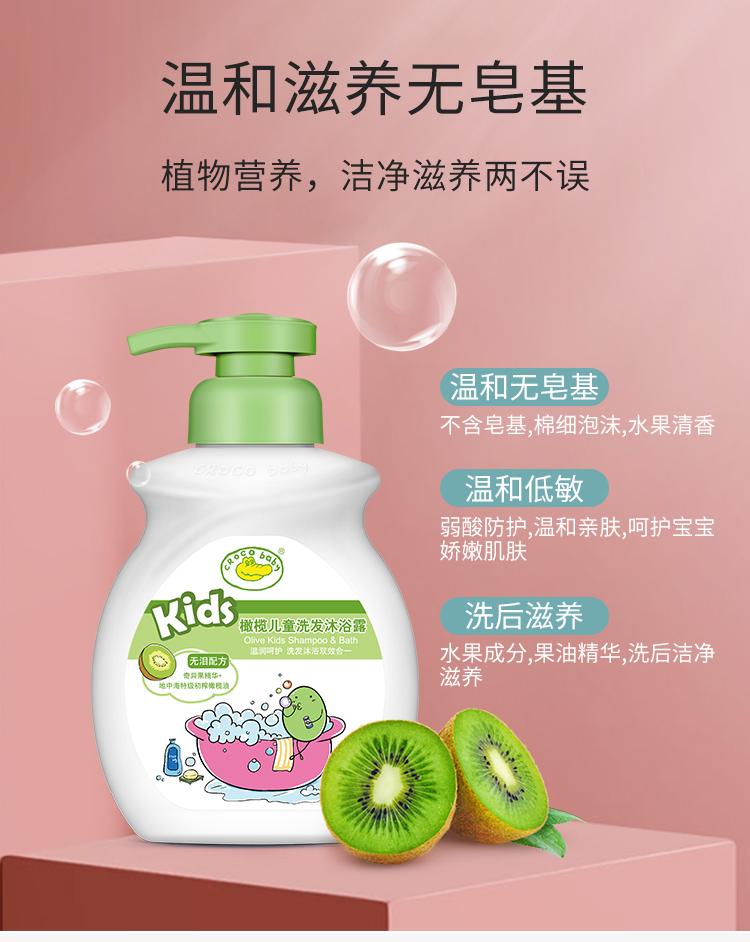 商品名称:鳄鱼宝宝橄榄儿童洗发沐浴露-奇异果味650g