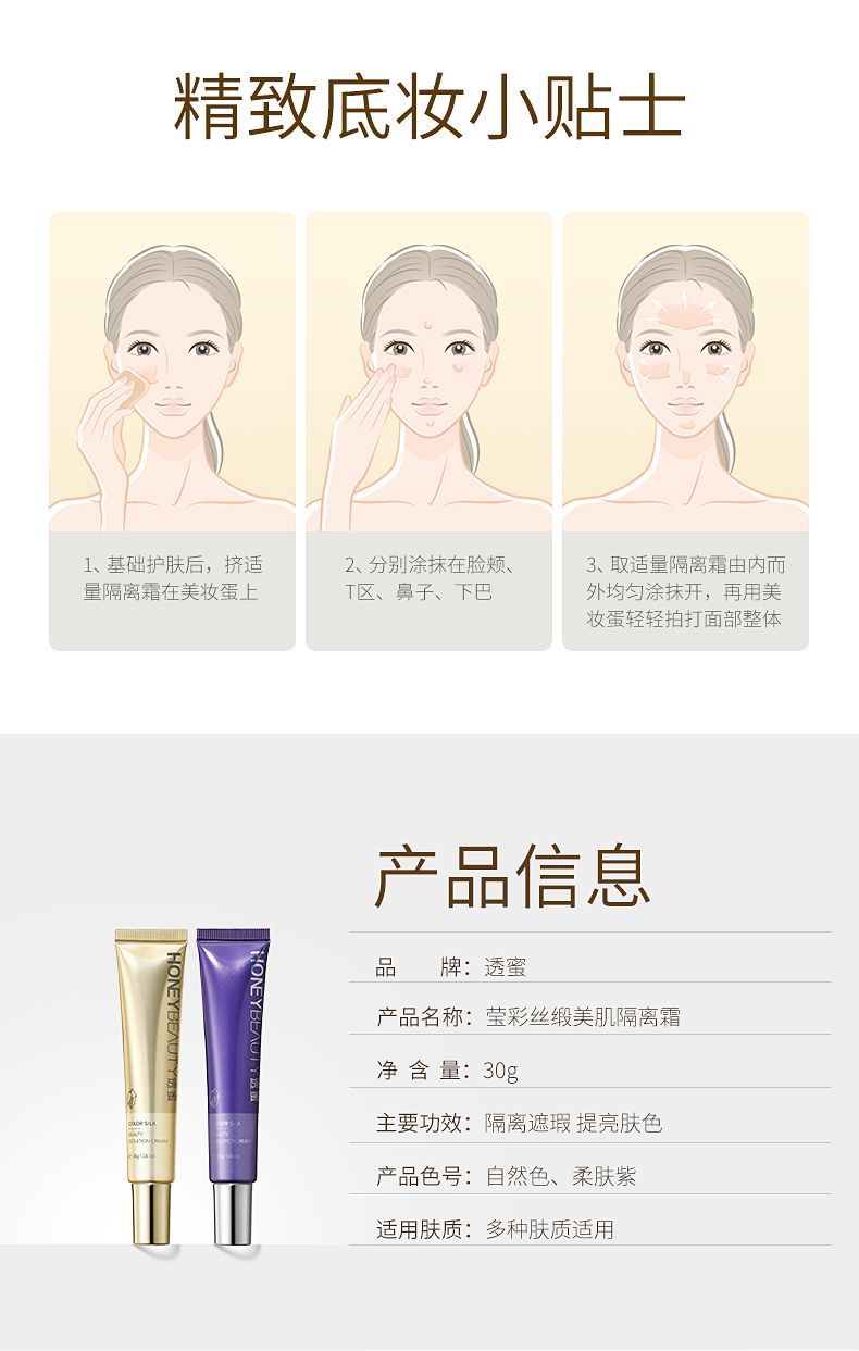 商品名称:透蜜莹彩丝缎美肌隔离霜(自然色)30g