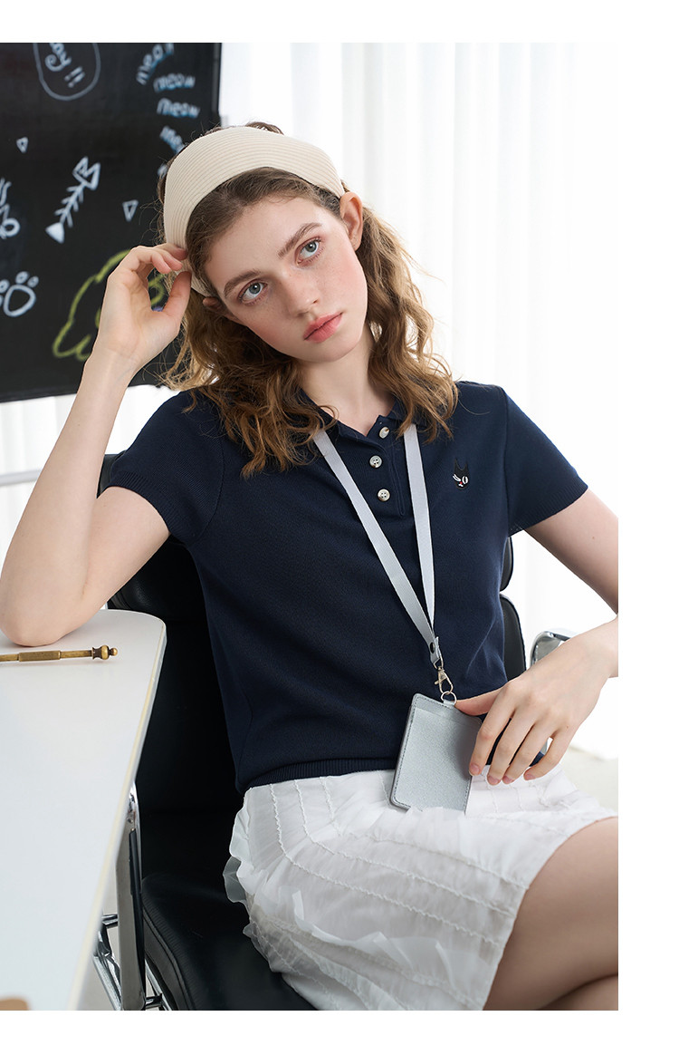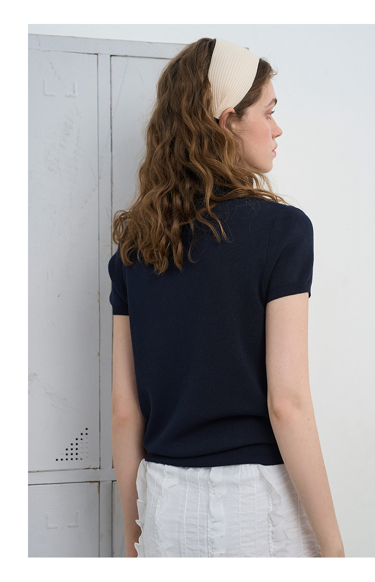 商品名称:复古修身显瘦美式复古针织短袖2025夏季百搭气质女式针织衫 382557
