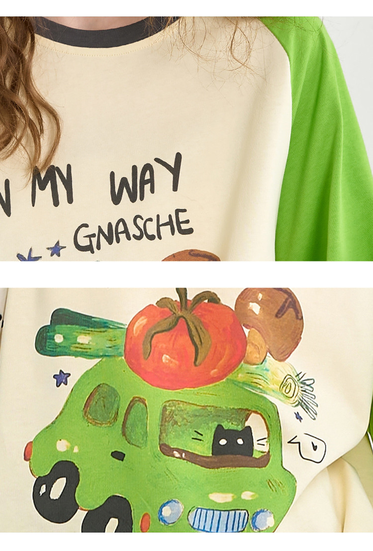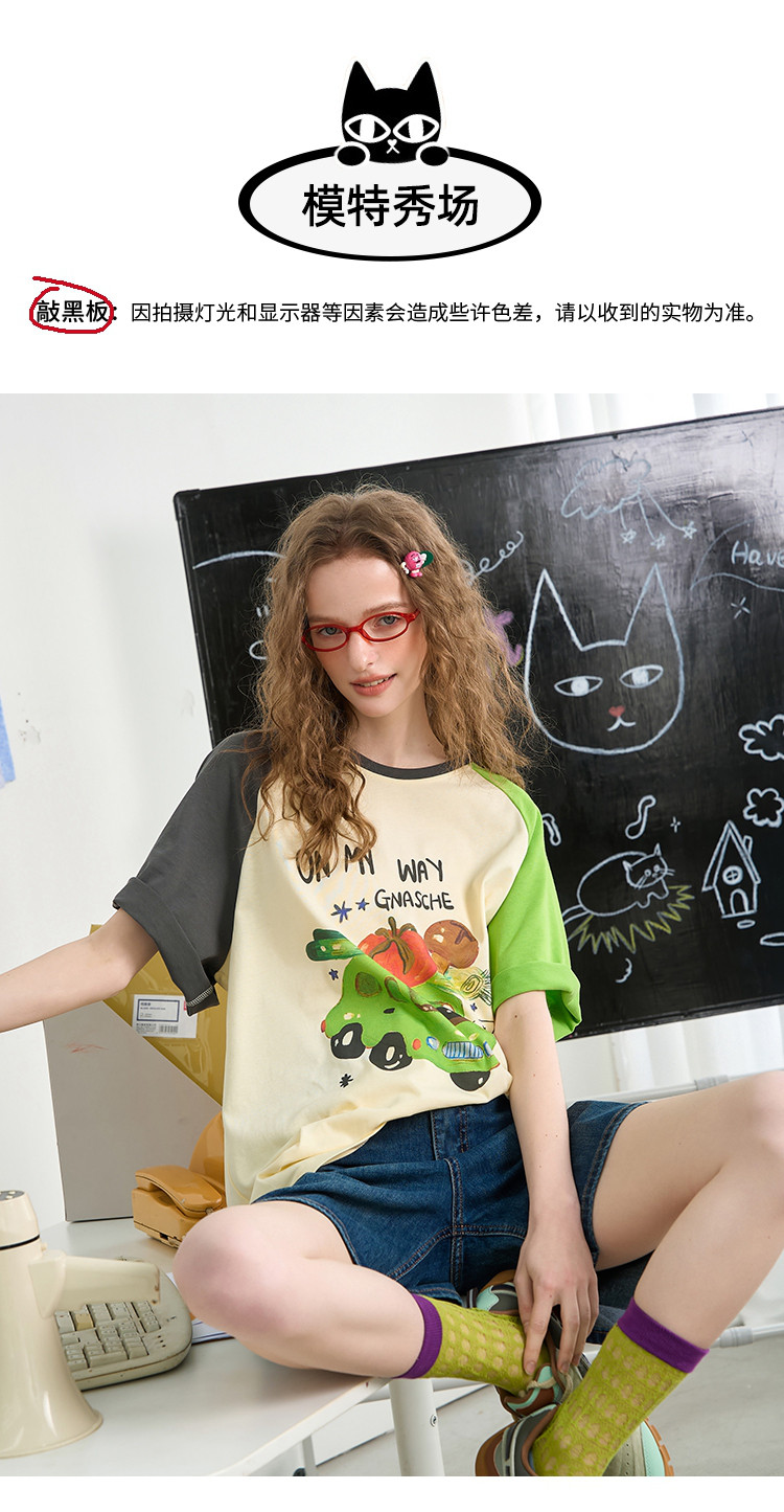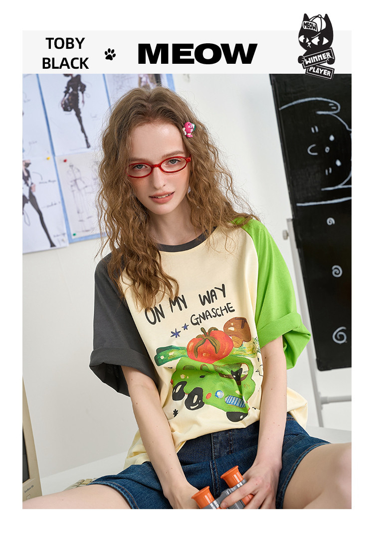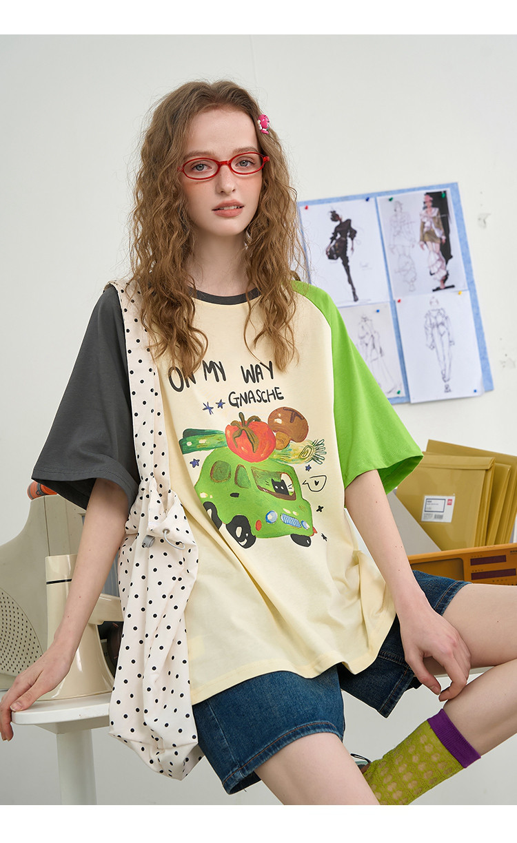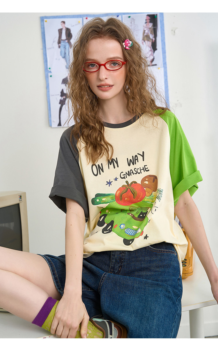 商品名称:【100%棉】撞色印花设计感上衣2025夏季宽松百搭女式T恤 842205