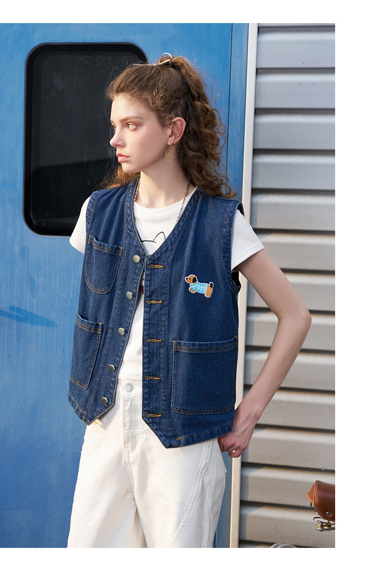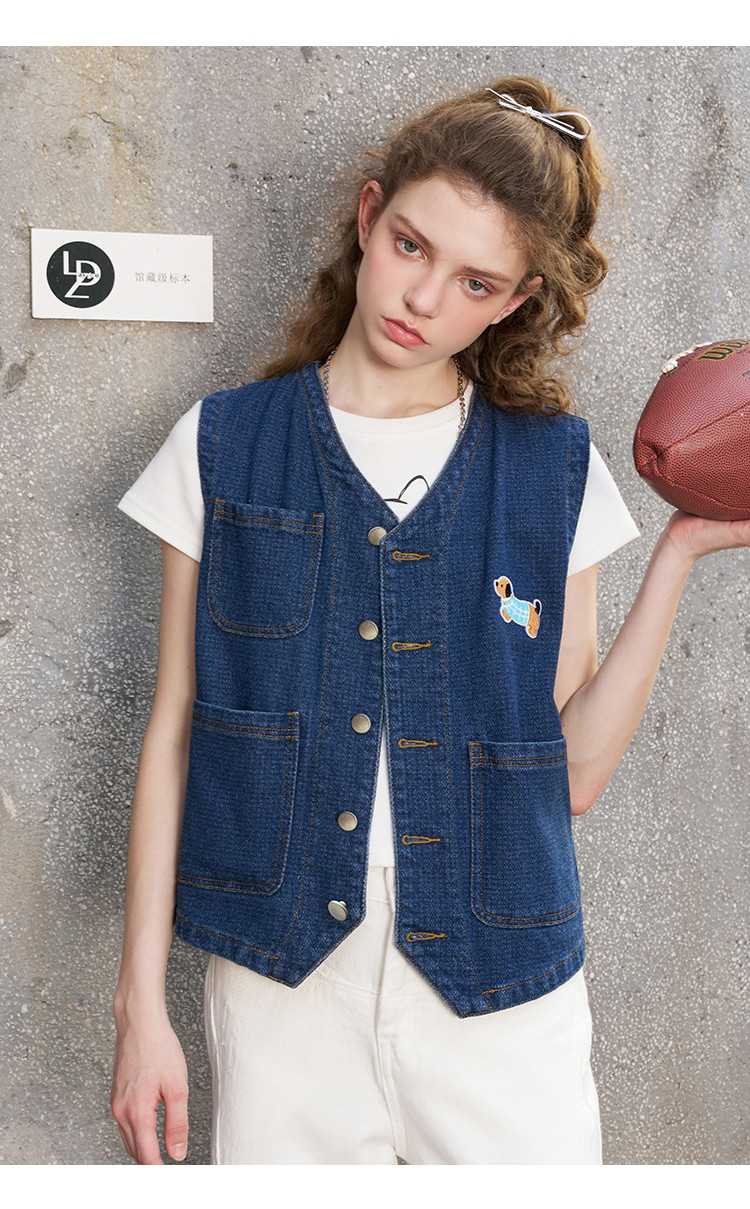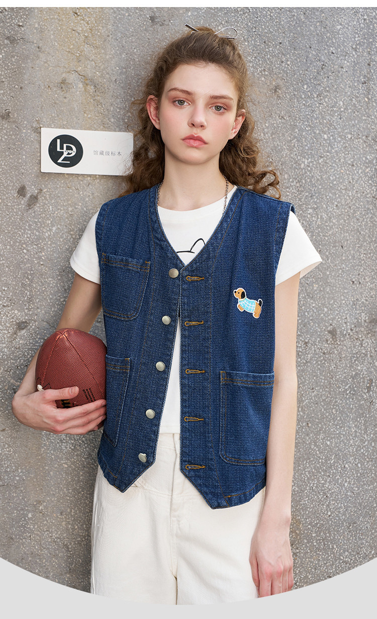 立体设计感显瘦V领牛仔上衣2025夏季休闲百搭女式马夹 804189