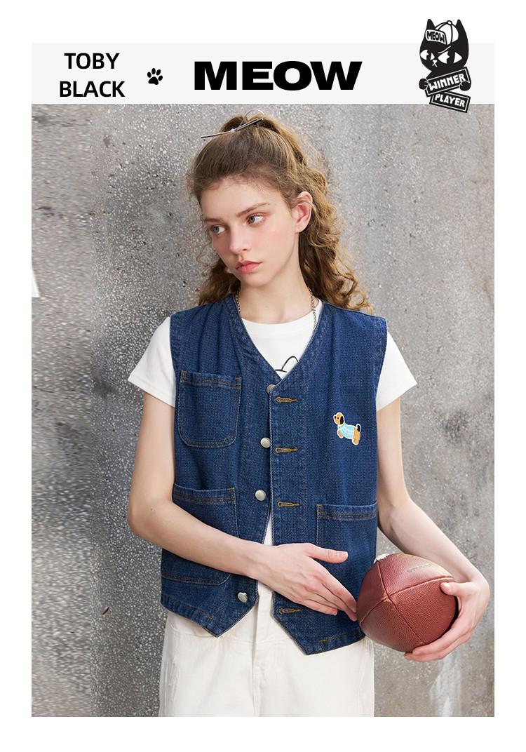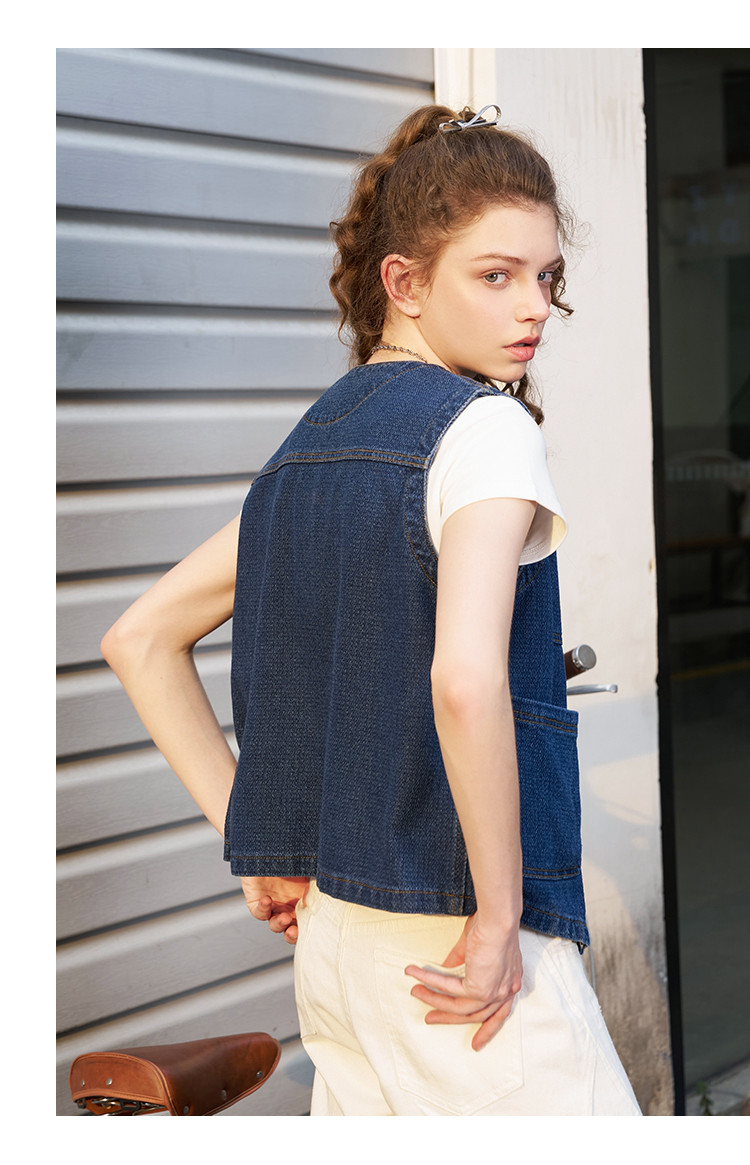 商品名称:立体设计感显瘦V领牛仔上衣2025夏季休闲百搭女式马夹 804189