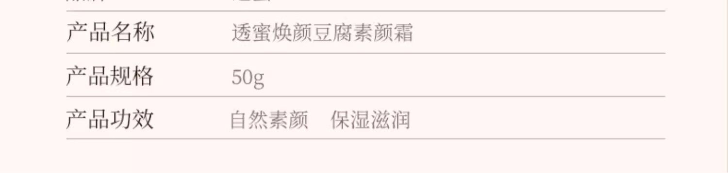 商品名称:【两瓶装】透蜜焕颜豆腐素颜霜(01#) 50g