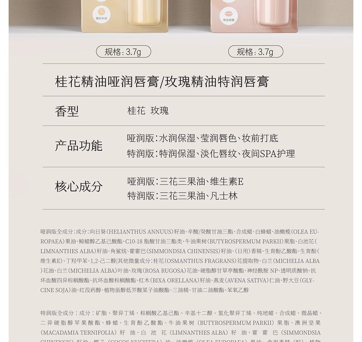 玫瑰精油特润唇膏3.7g