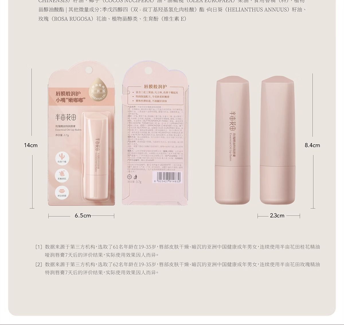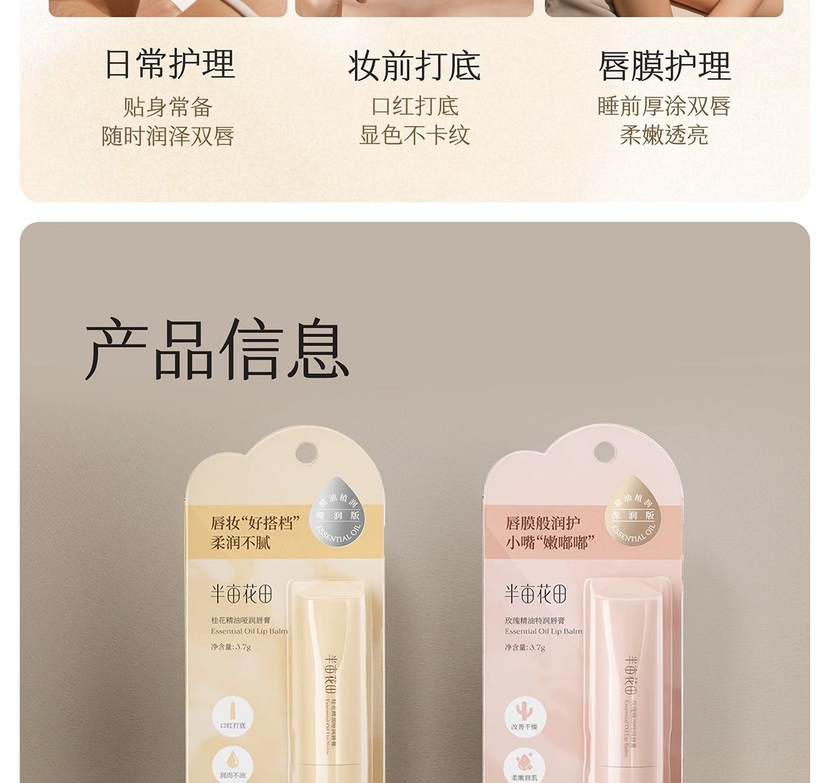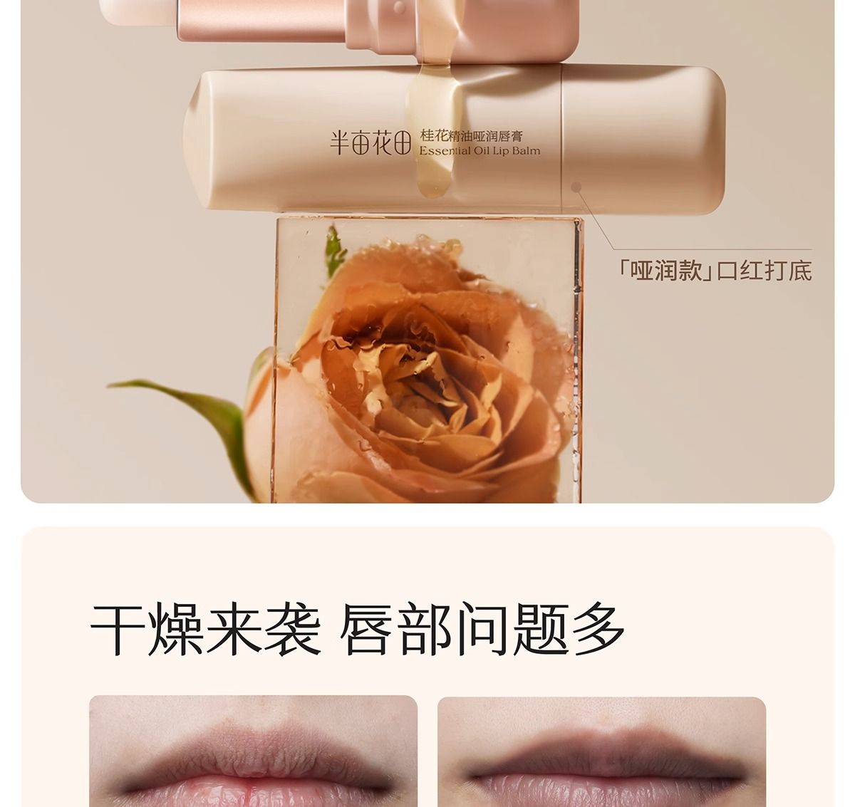 商品名称:半亩花田玫瑰精油特润唇膏3.7g-(2.0版本)