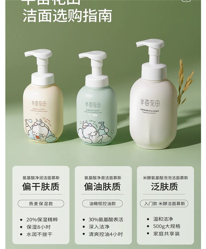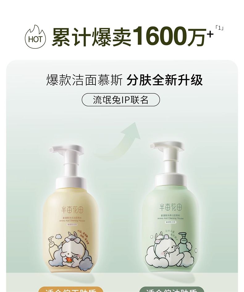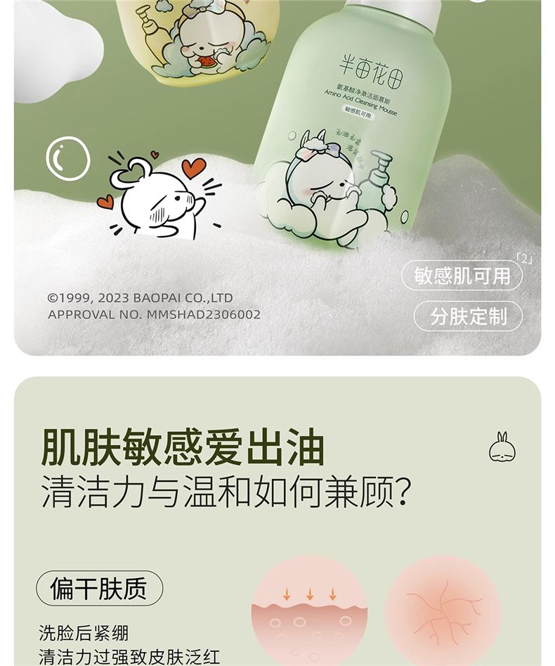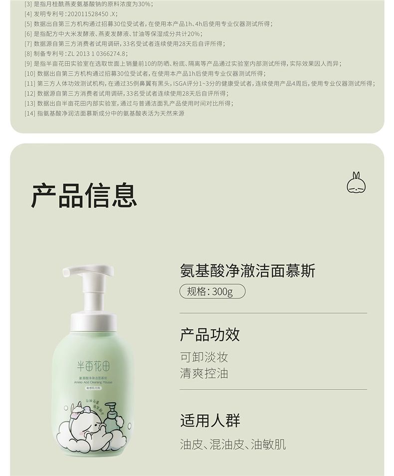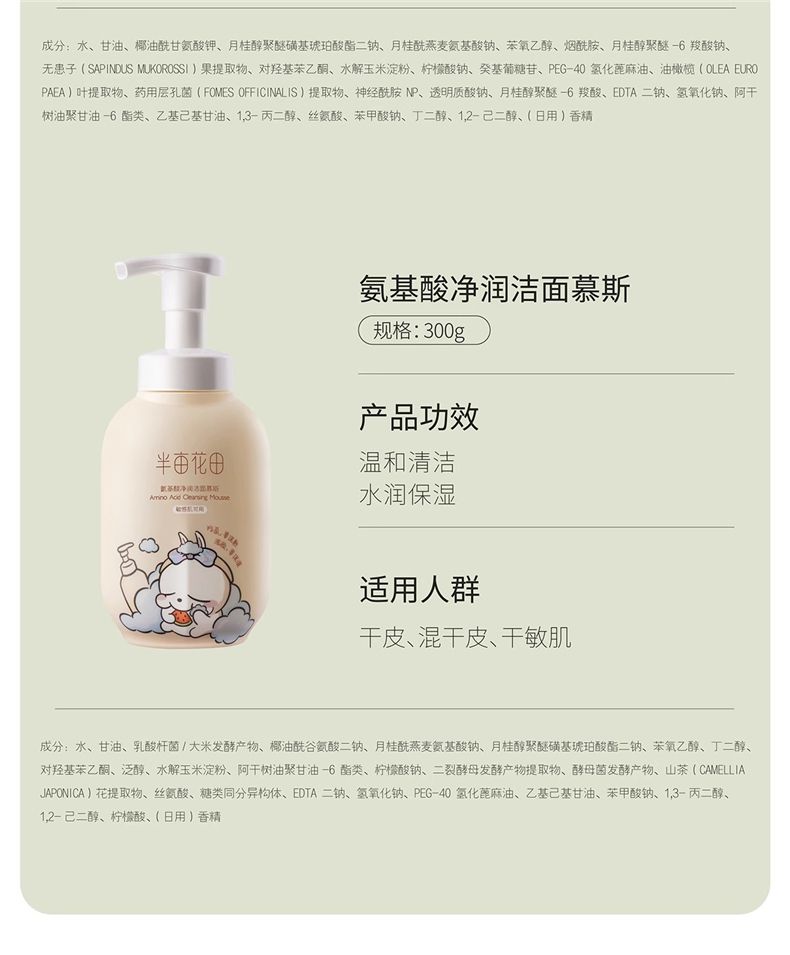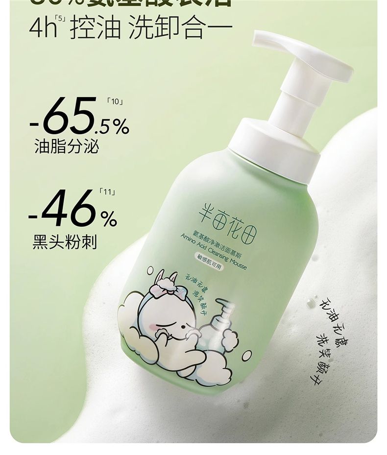商品名称:半亩花田氨基酸净澈洁面慕斯IP联名款 300g 泡沫清洁控油男女