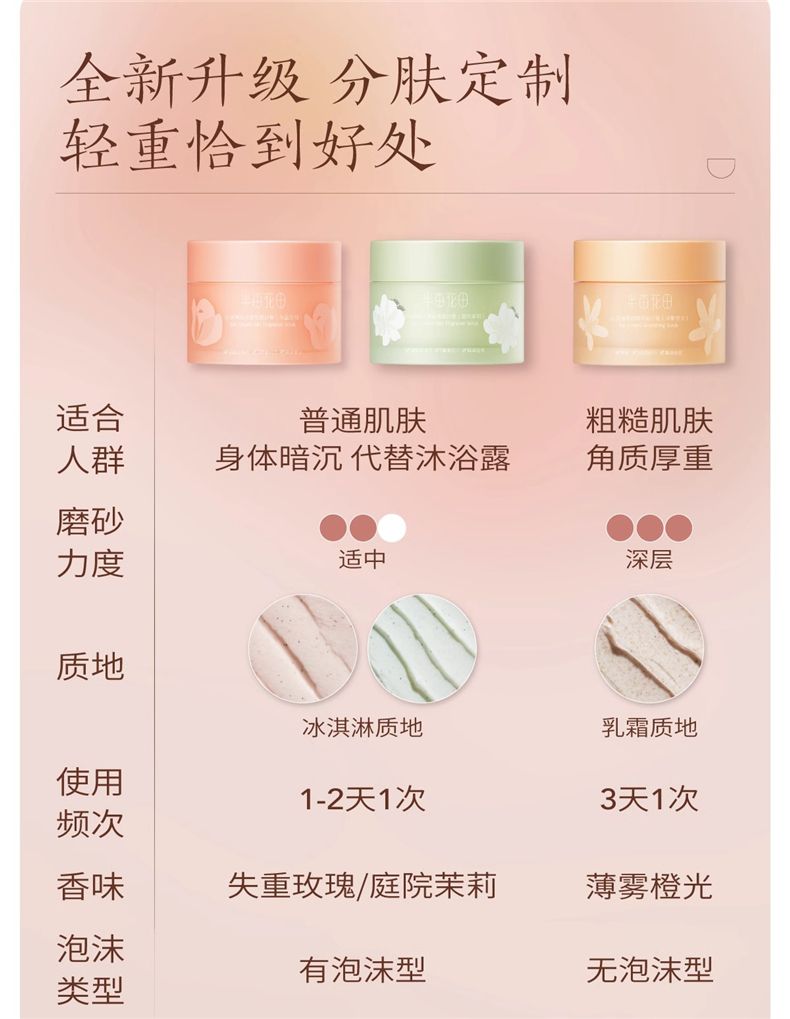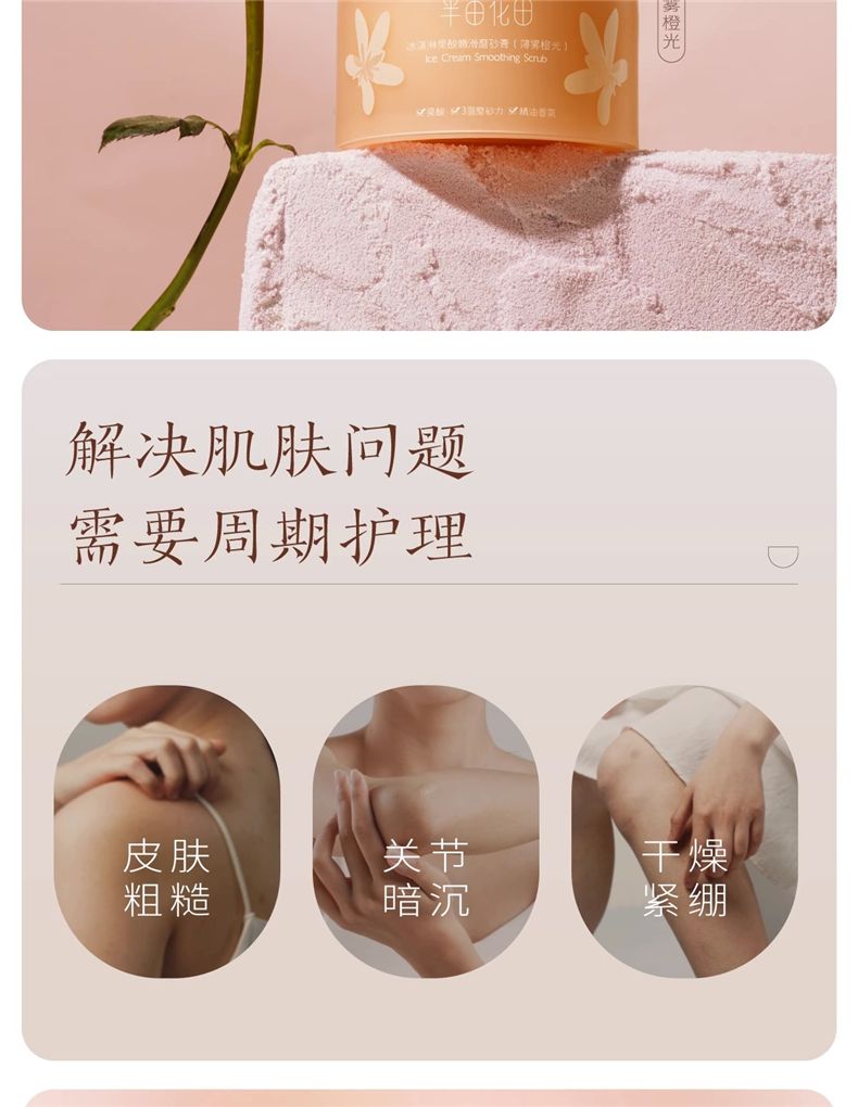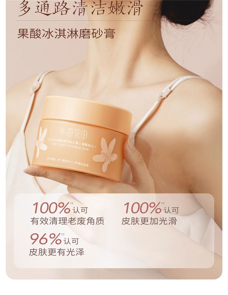 商品名称:半亩花田冰淇淋丝滑香氛磨砂膏250g 去角质疙瘩保湿滋润果酸沐浴全身女夏季
