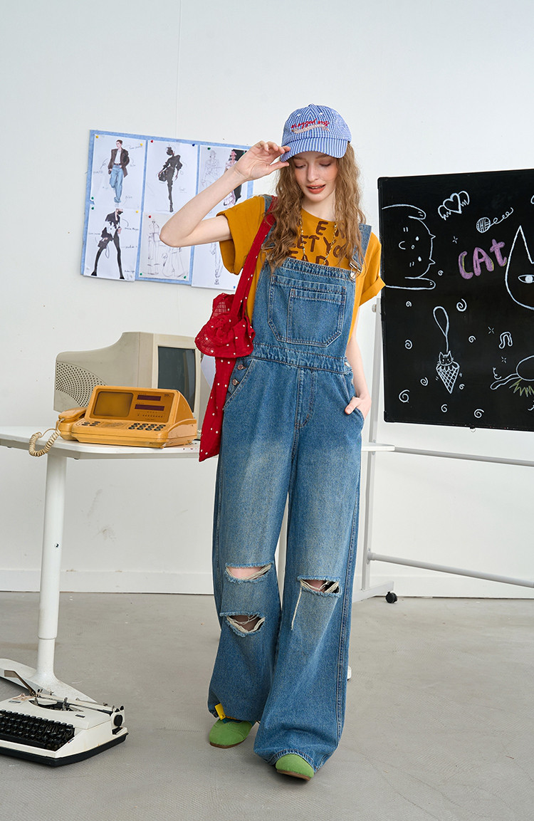 欧美风夏季破洞牛仔背带裤2025夏季百搭休闲女式连体裤 800093