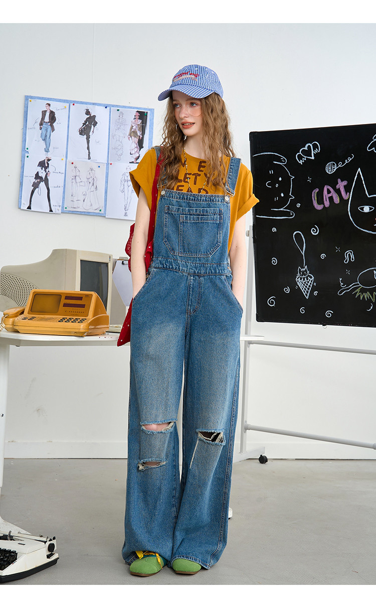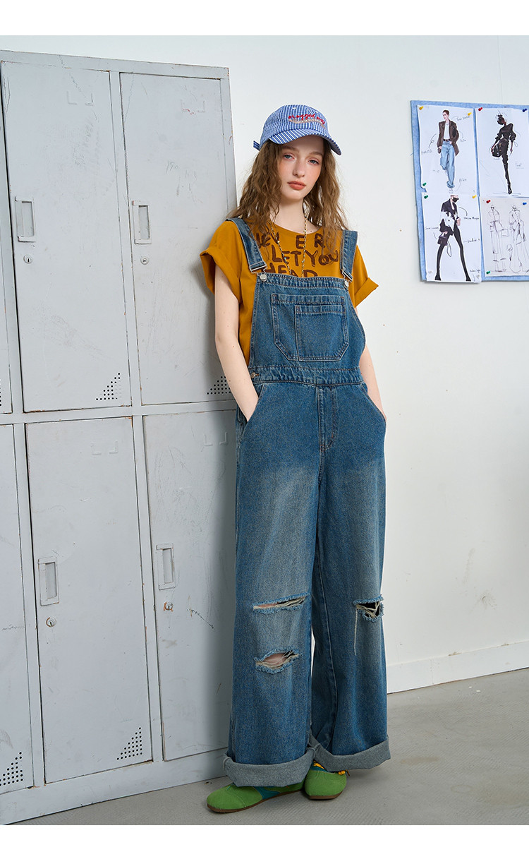 商品名称:欧美风夏季破洞牛仔背带裤2025夏季百搭休闲女式连体裤 800093