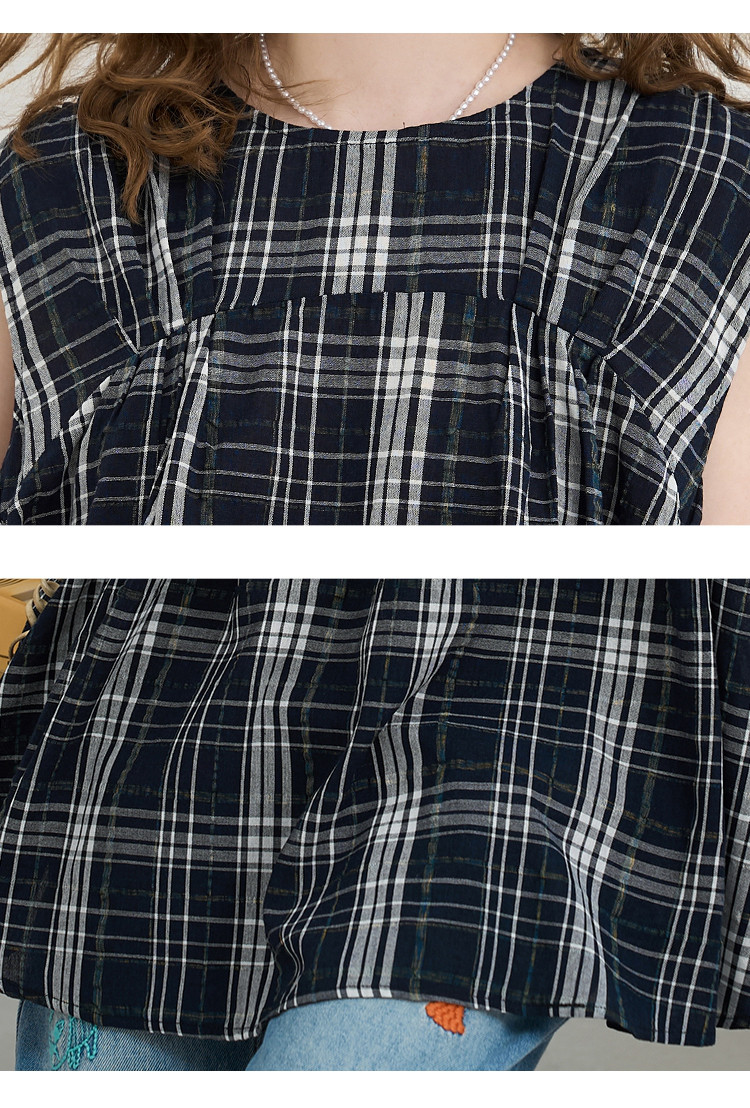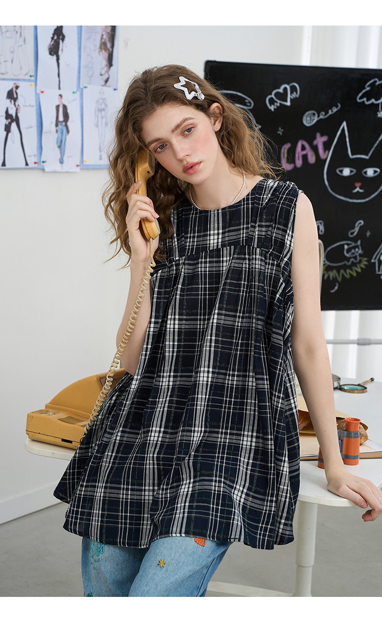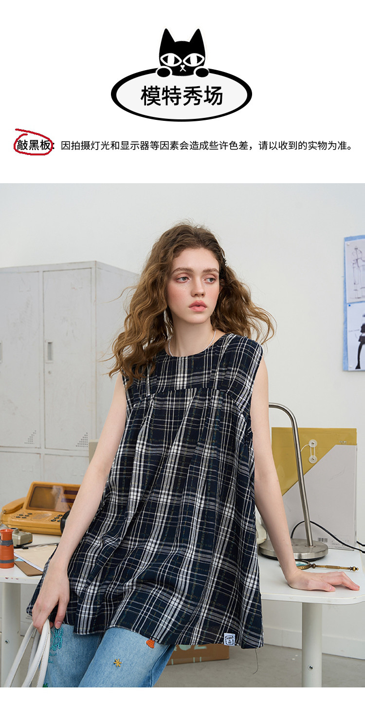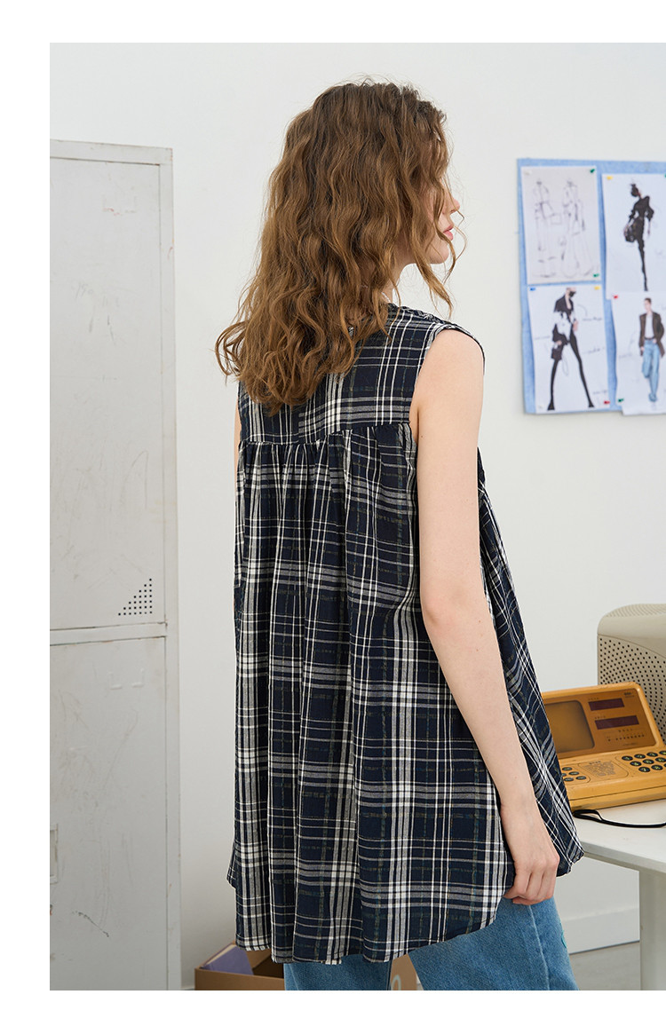商品名称:日系格子无袖娃娃衫背心衬衣2025夏季百搭休闲女式衬衫 698845