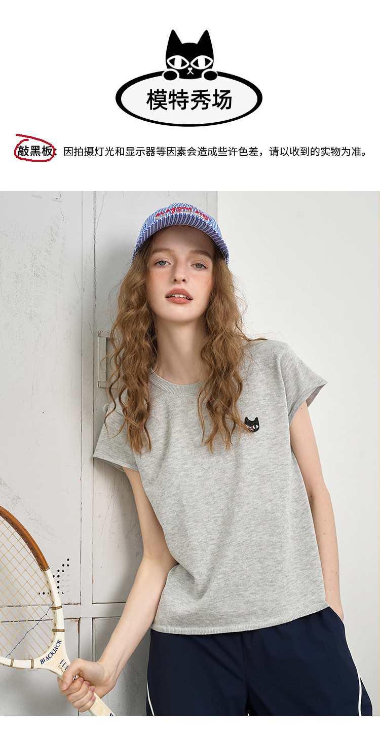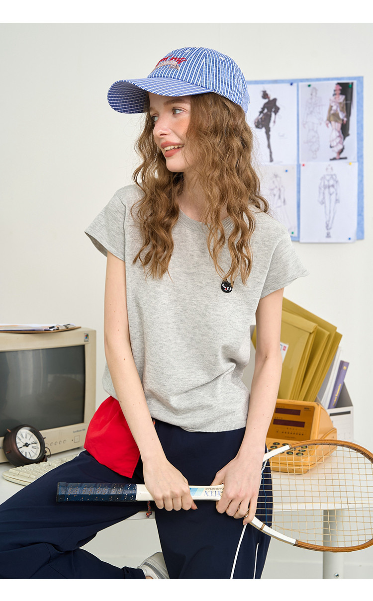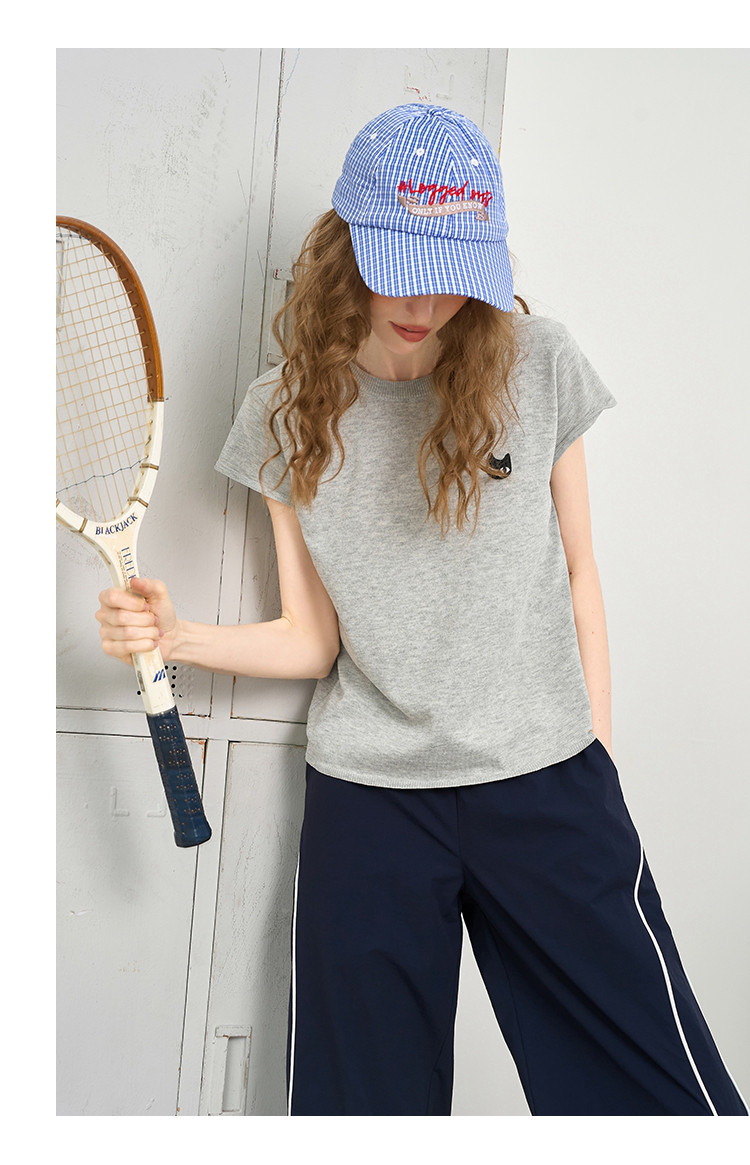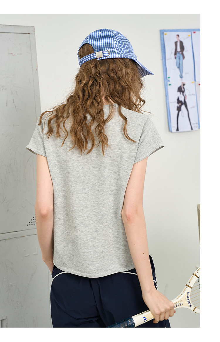 商品名称:韩系简约文艺风圆领针织短袖上衣2025夏季休闲百搭女式针织衫 455197