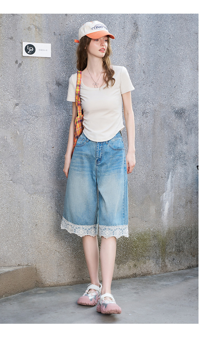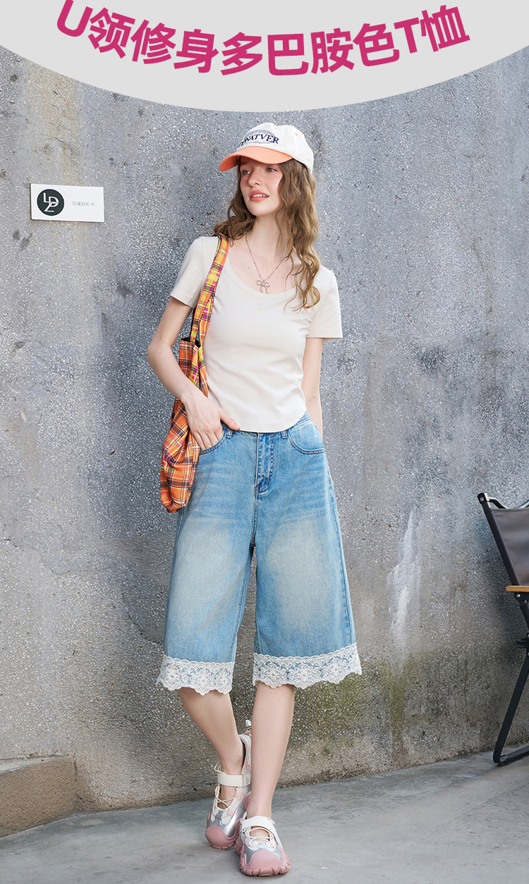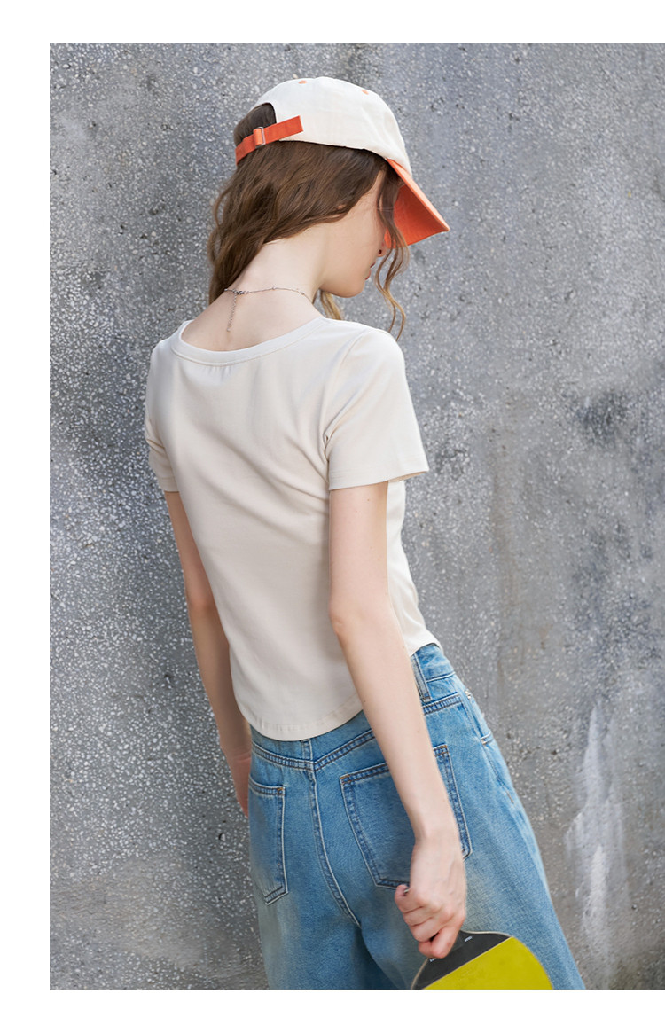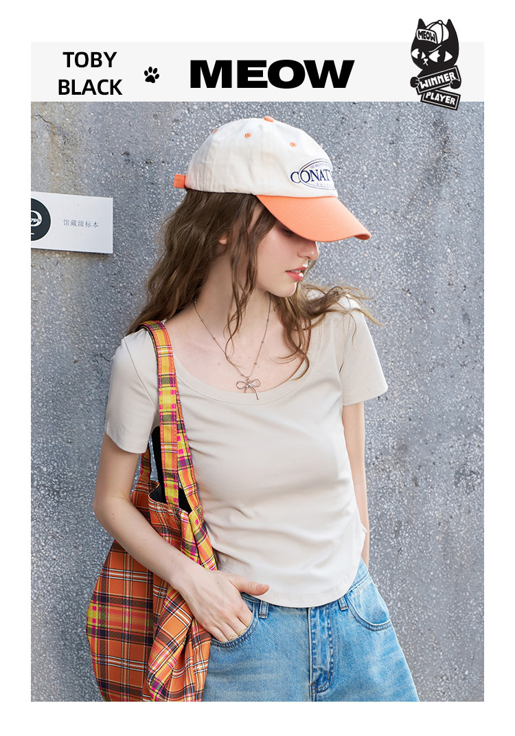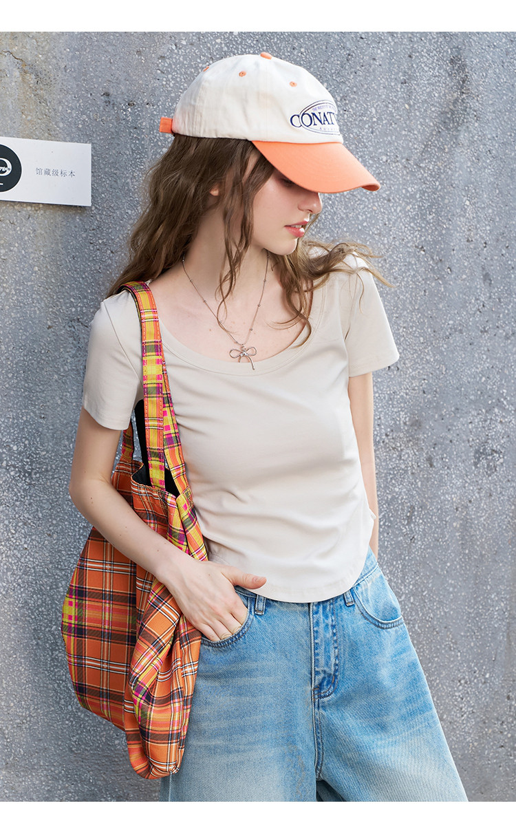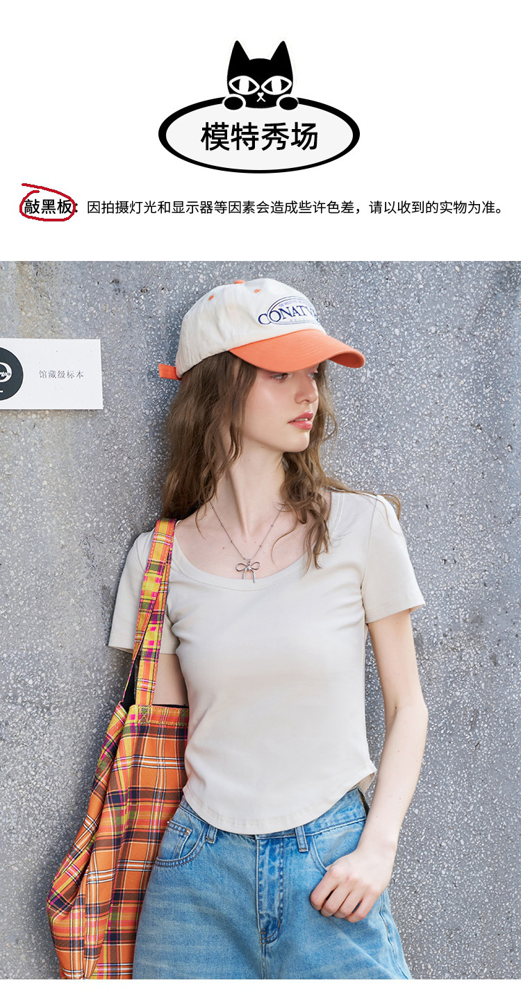 商品名称:多巴胺色系U领修身短袖上衣2025夏季百搭休闲女式T恤 388381