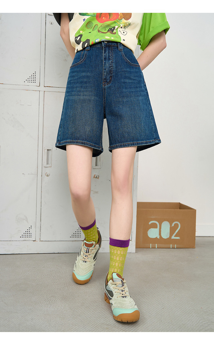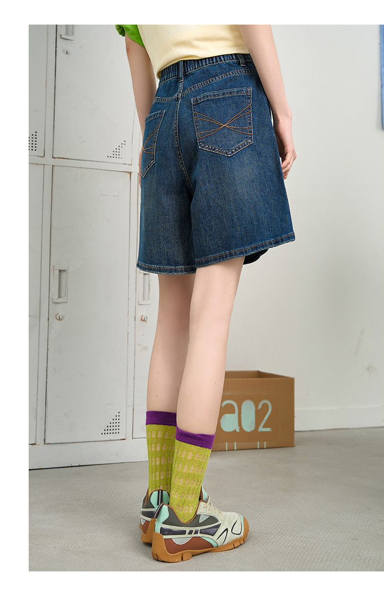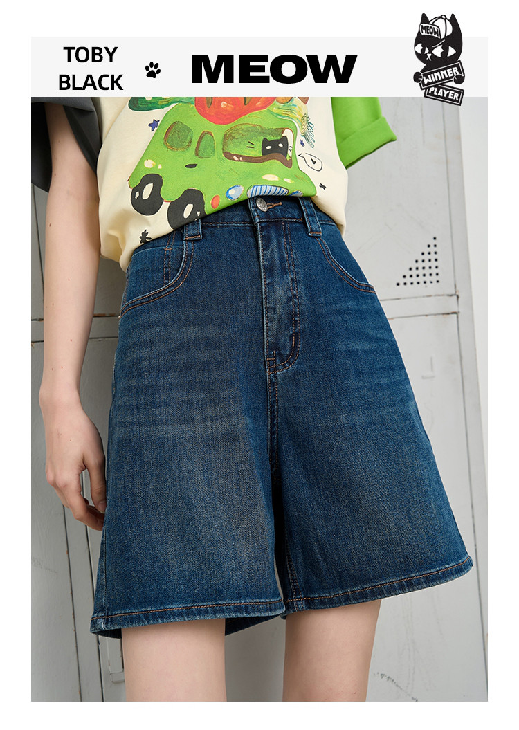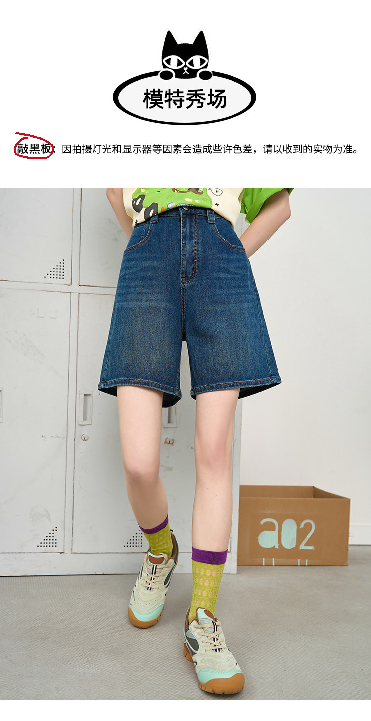 商品名称:复古高腰牛仔短裤五分宽松直筒裤2025夏季百搭休闲女式牛仔裤 862685