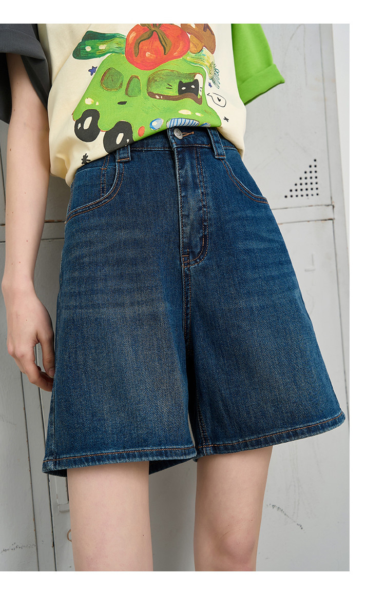 复古高腰牛仔短裤五分宽松直筒裤2025夏季百搭休闲女式牛仔裤 862685
