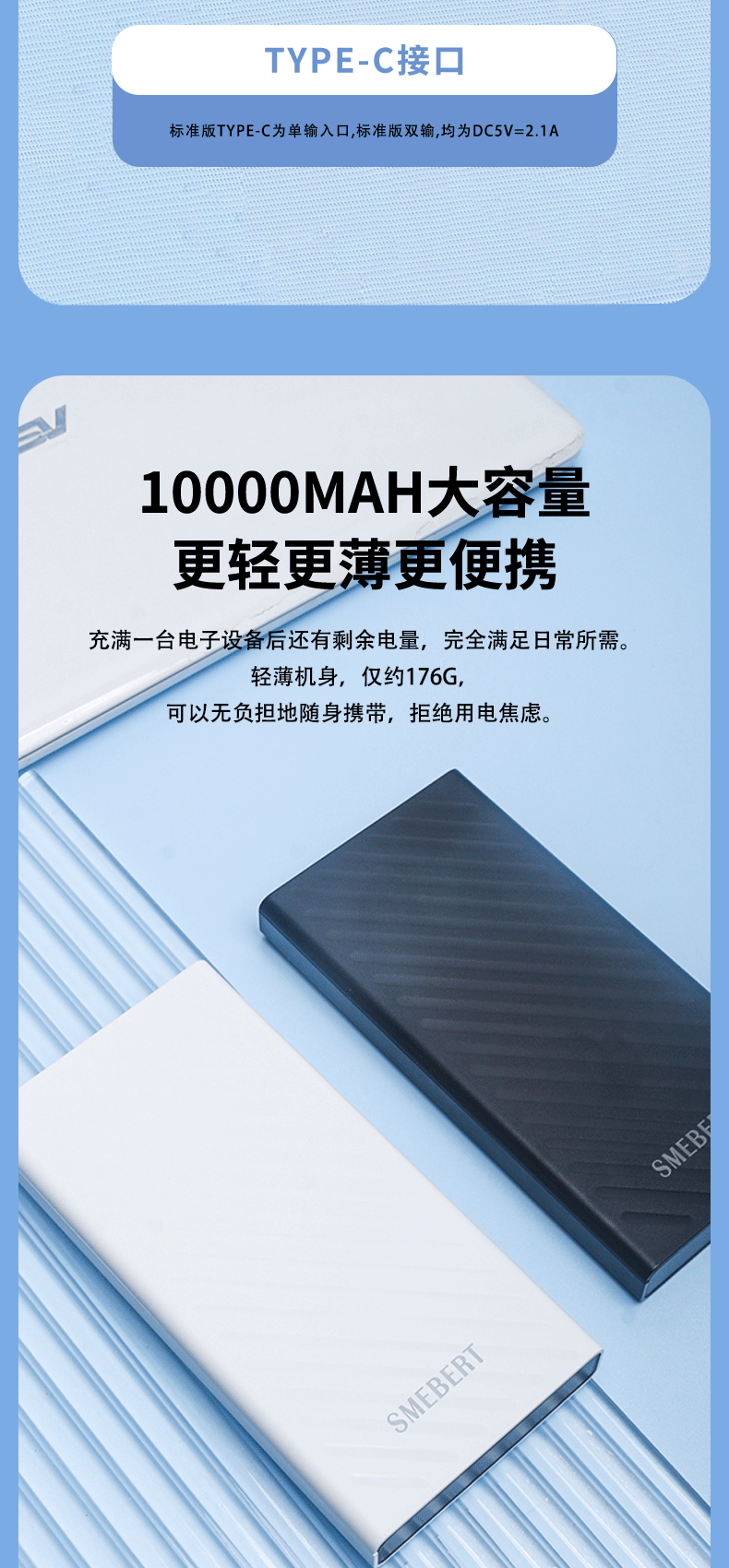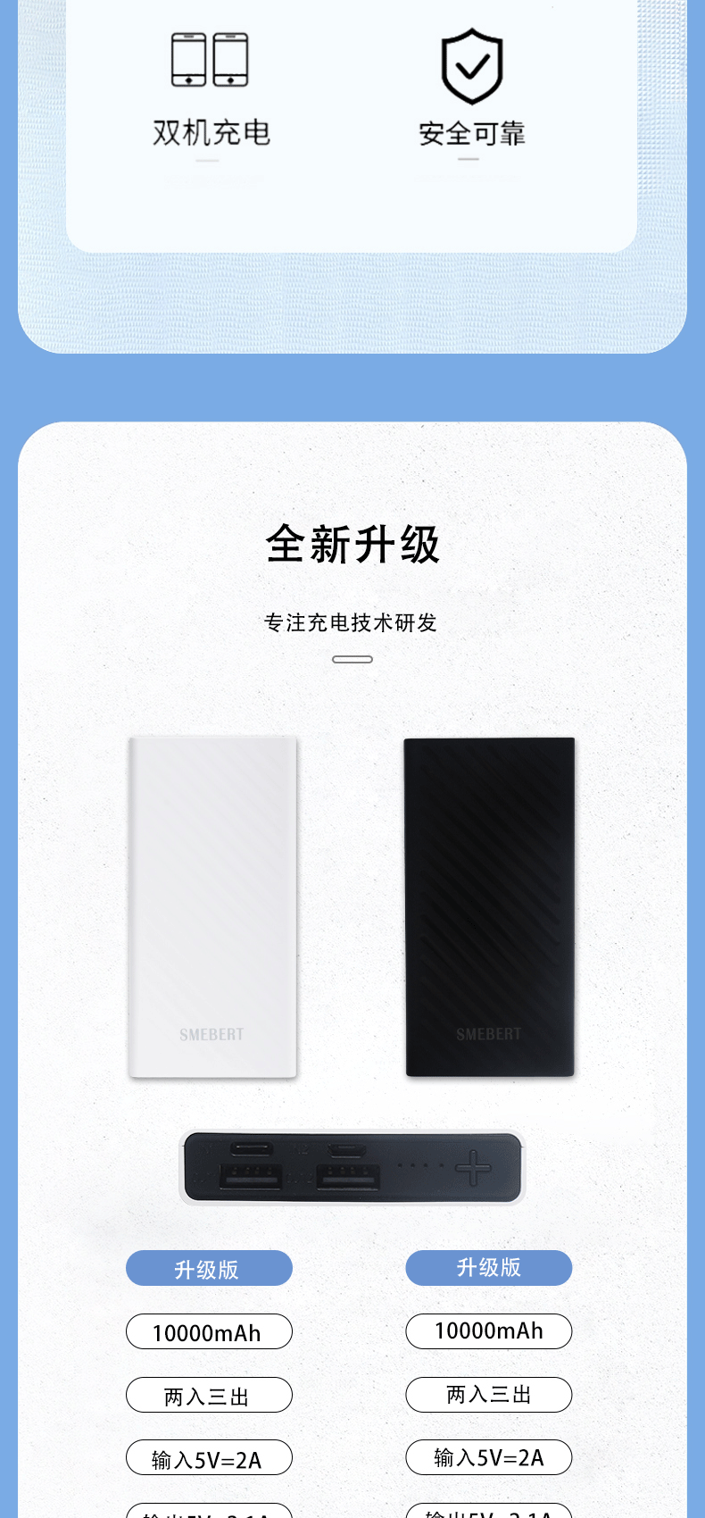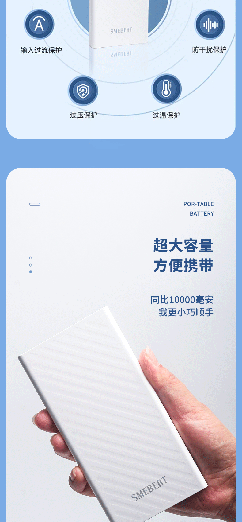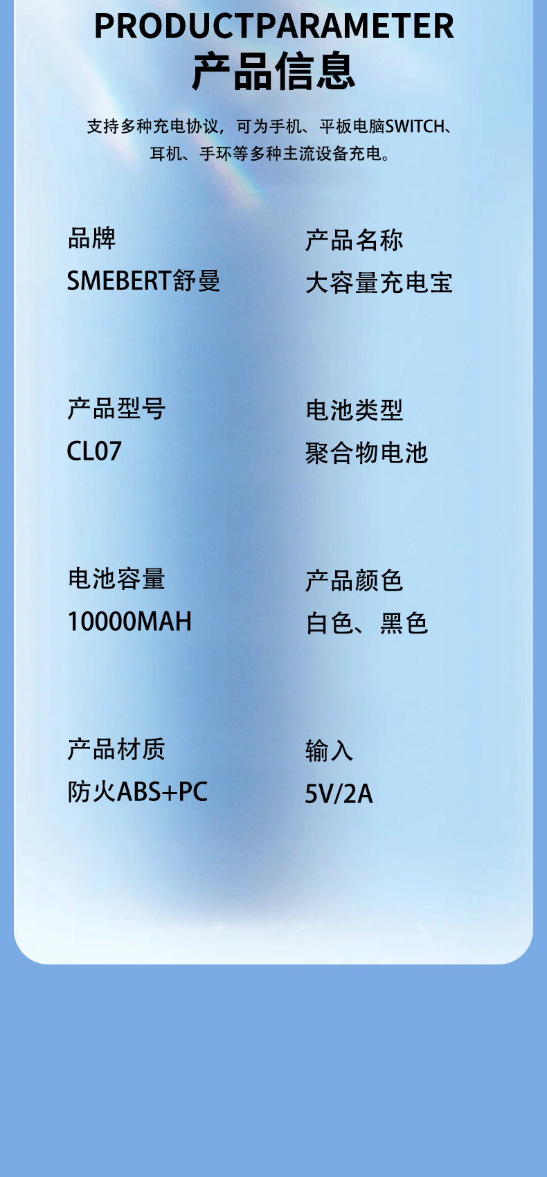 商品名称:SMEBERT/舒曼10000毫安移动电源CL07