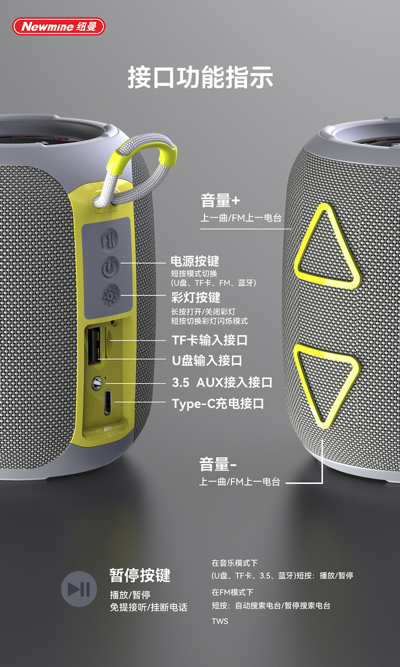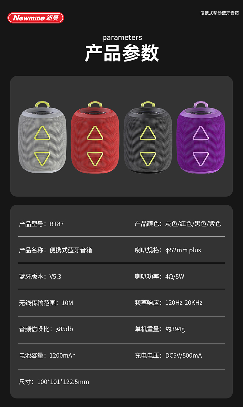 商品名称:Newmine/纽曼便携式炫彩蓝牙音响BT87