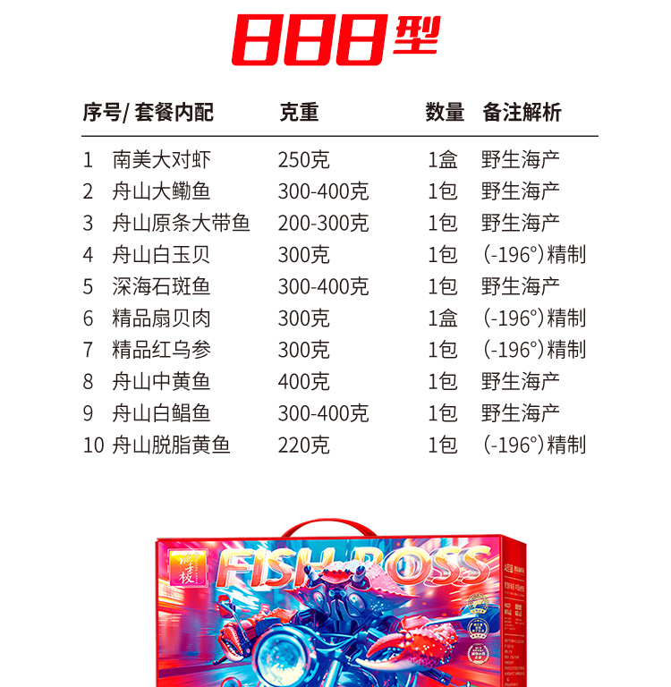 商品名称:【京东/顺丰配送】Fish boss/渔老板A珍品888型海鲜礼盒约2870g