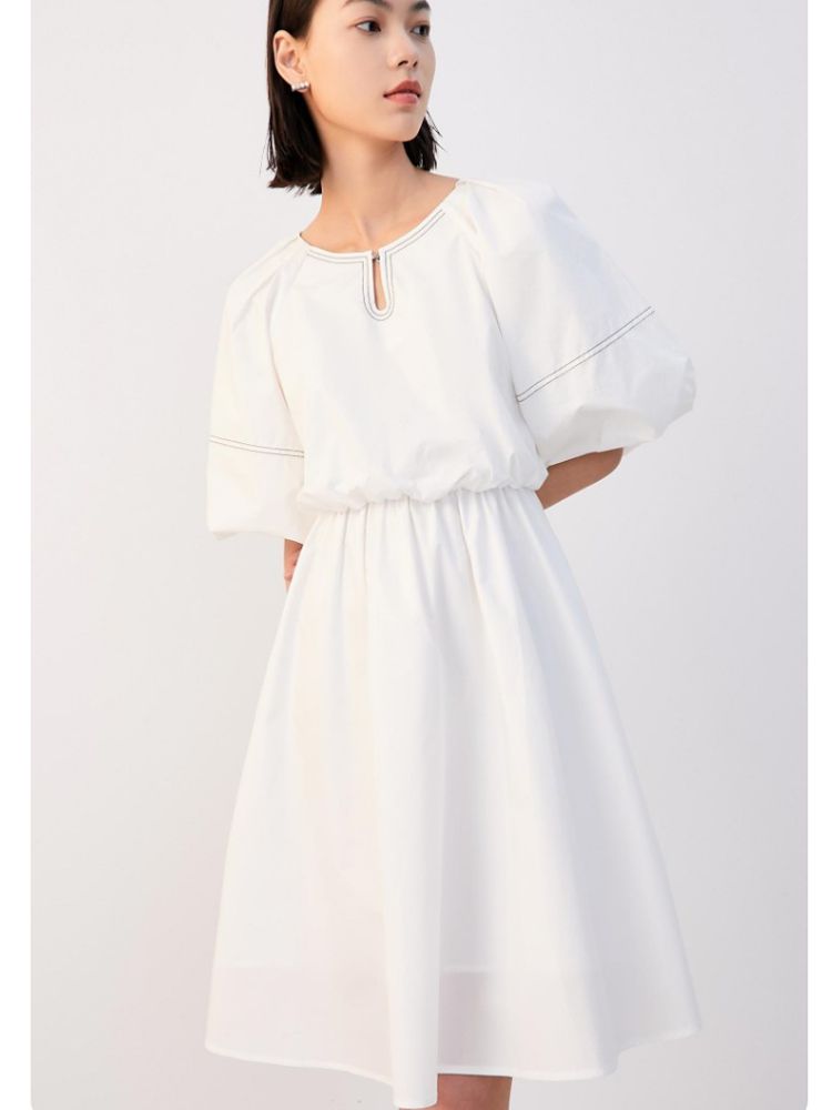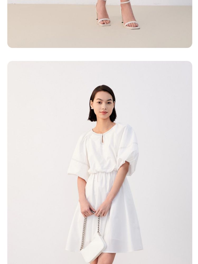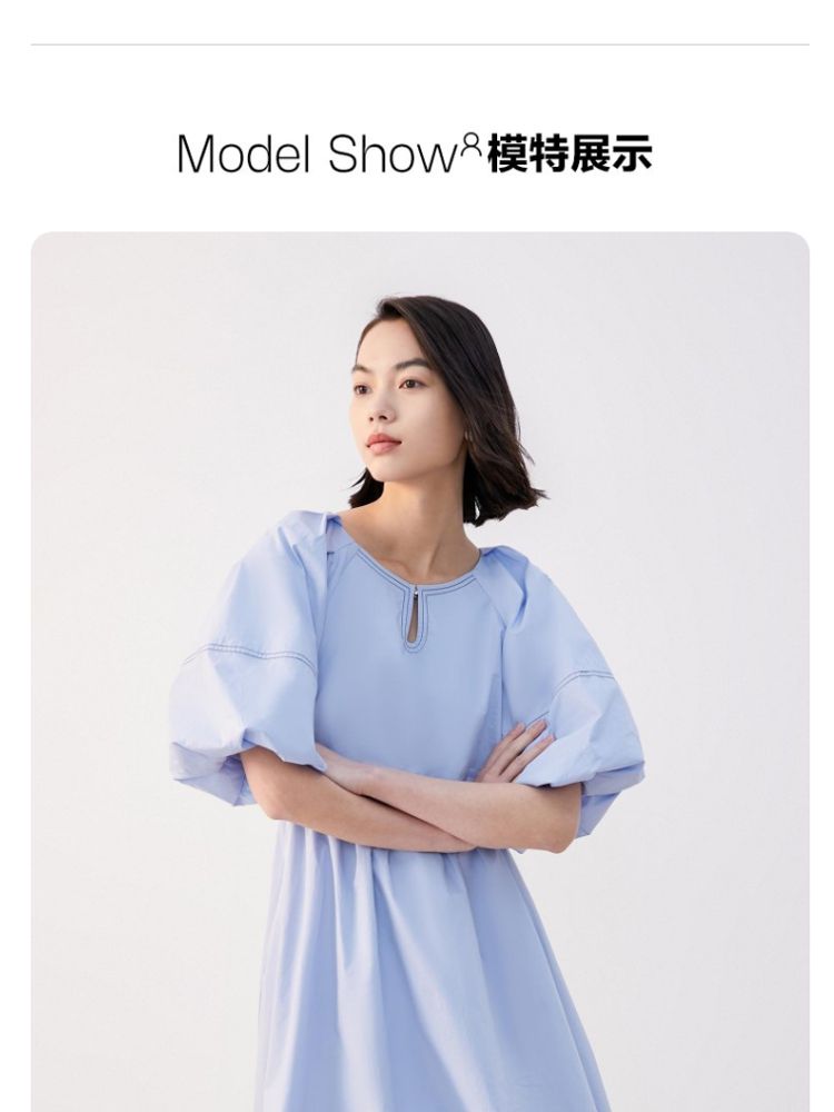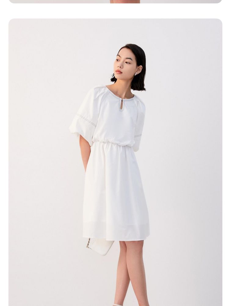 优雅简约收腰五分袖裙连衣裙女气质百搭时尚春夏 626385