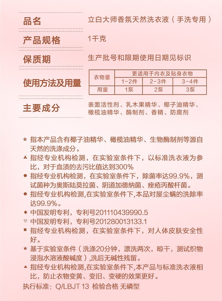 商品名称:Liby/立白大师香氛天然洗衣液瓶装1kg