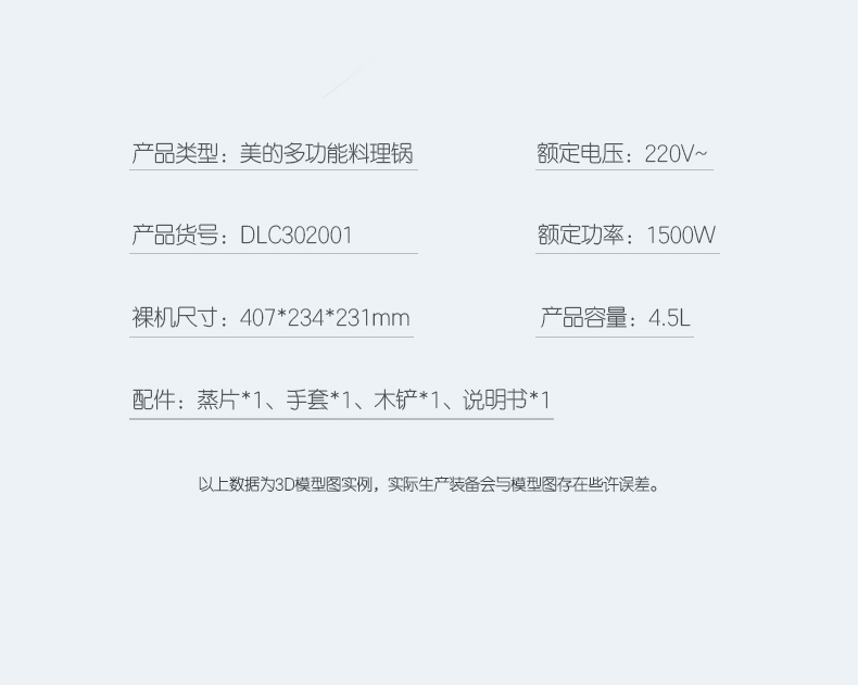 商品名称:Midea/美的4.5升多功能料理锅MC-DLC302001