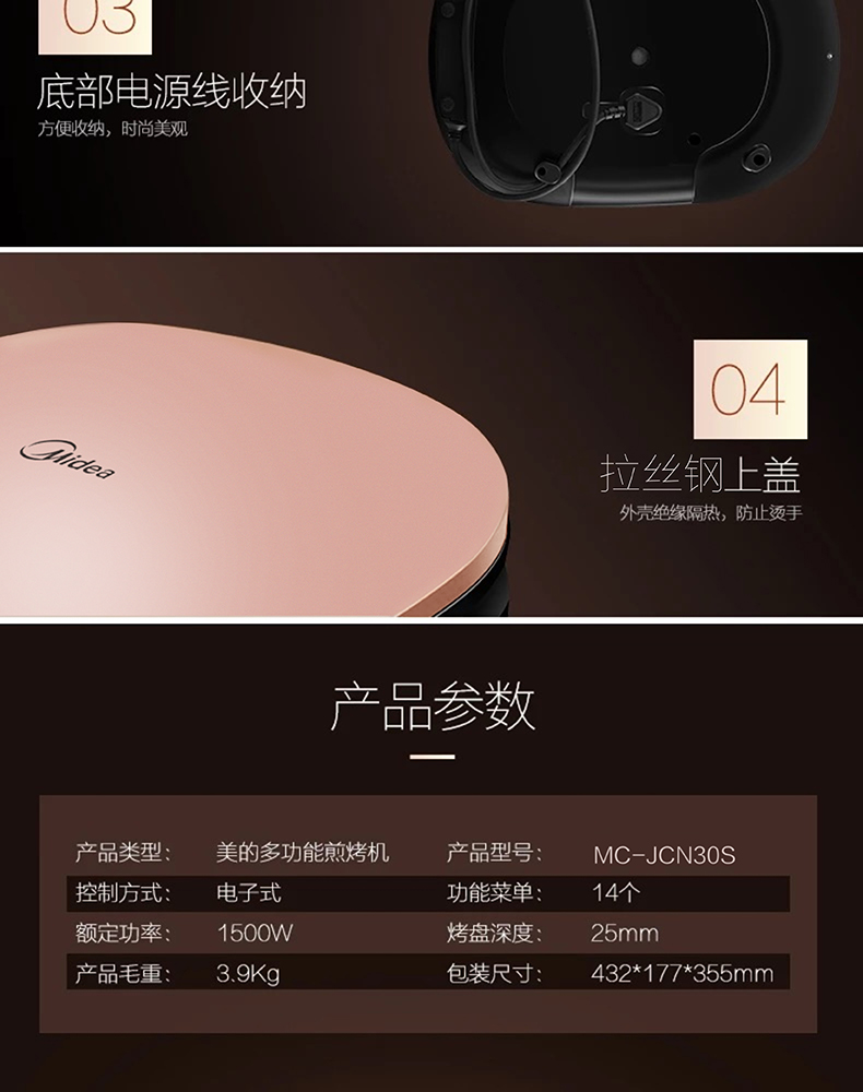 商品名称:Midea/美的多功能煎烤机MC-JCN30S