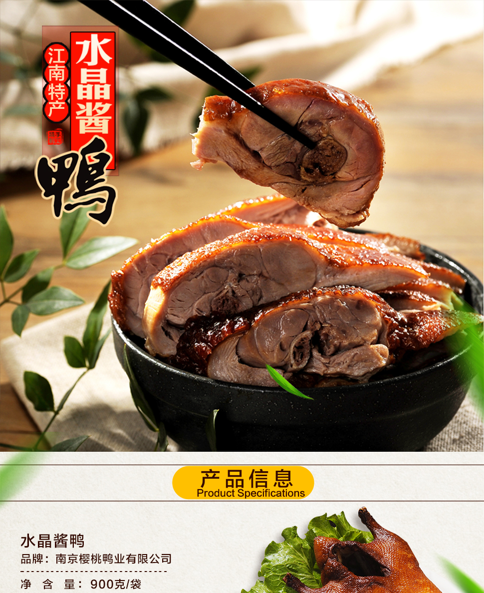 商品名称:樱桃鸭南京特产水晶酱鸭900g