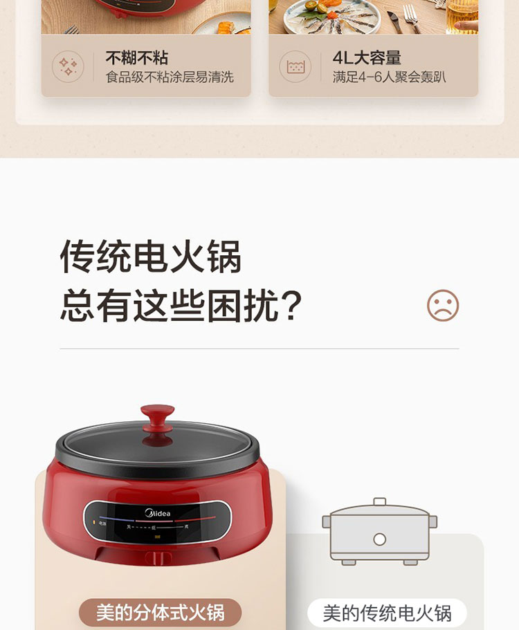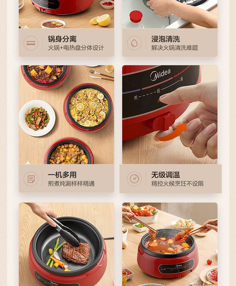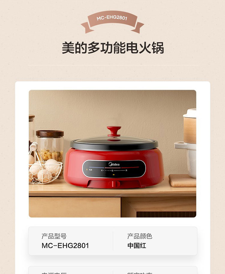 商品名称:Midea/美的4升多功能电火锅-中国红EHG2801