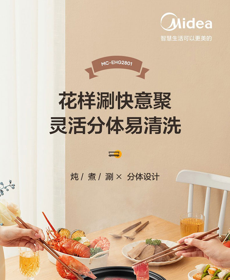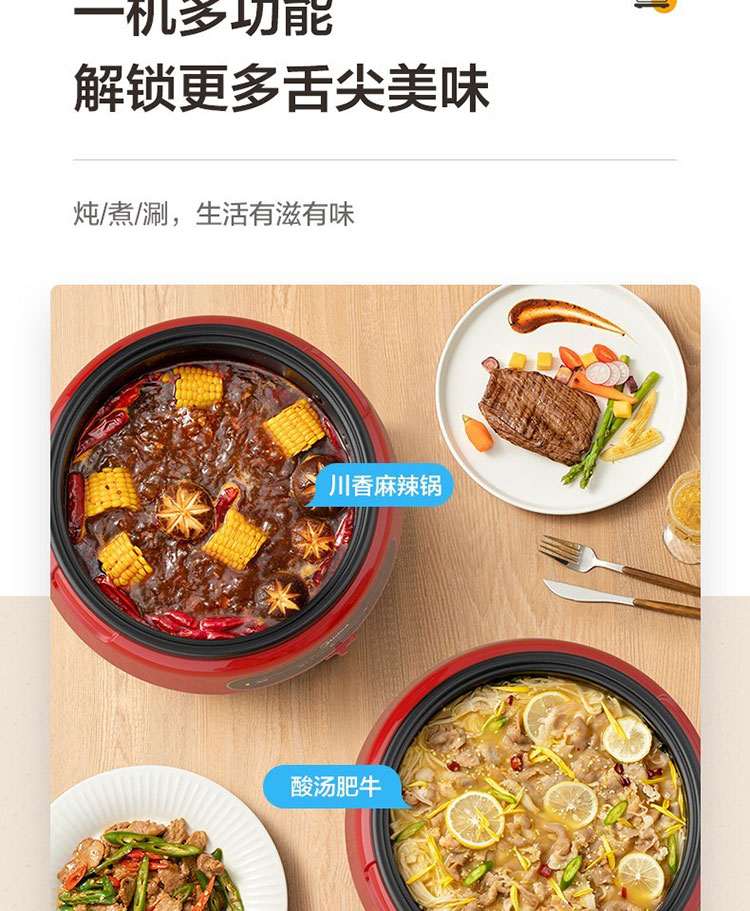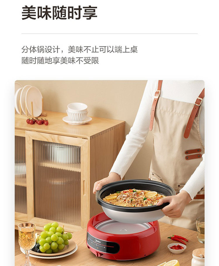 Midea/美的4升多功能电火锅-中国红EHG2801