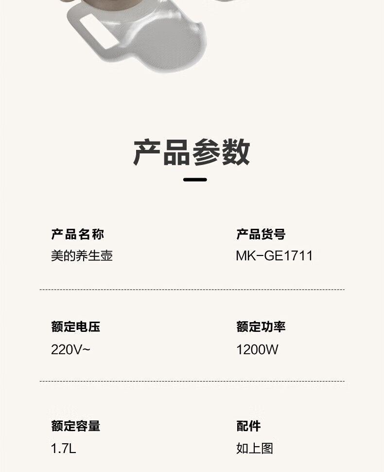 商品名称:Midea/美的1.7升养生壶 GE1711
