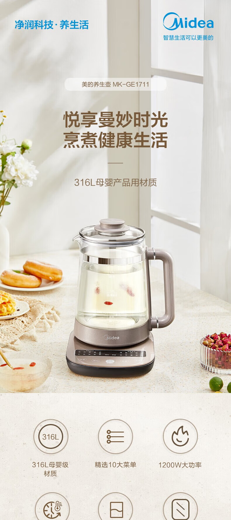Midea/美的1.7升养生壶 GE1711