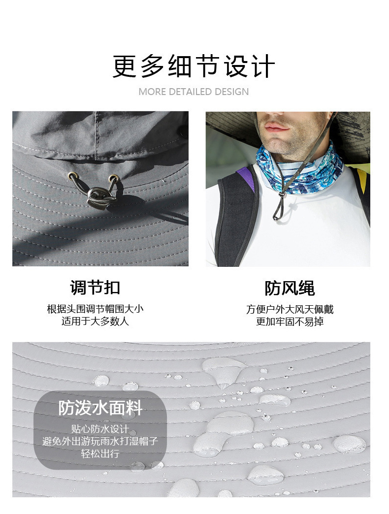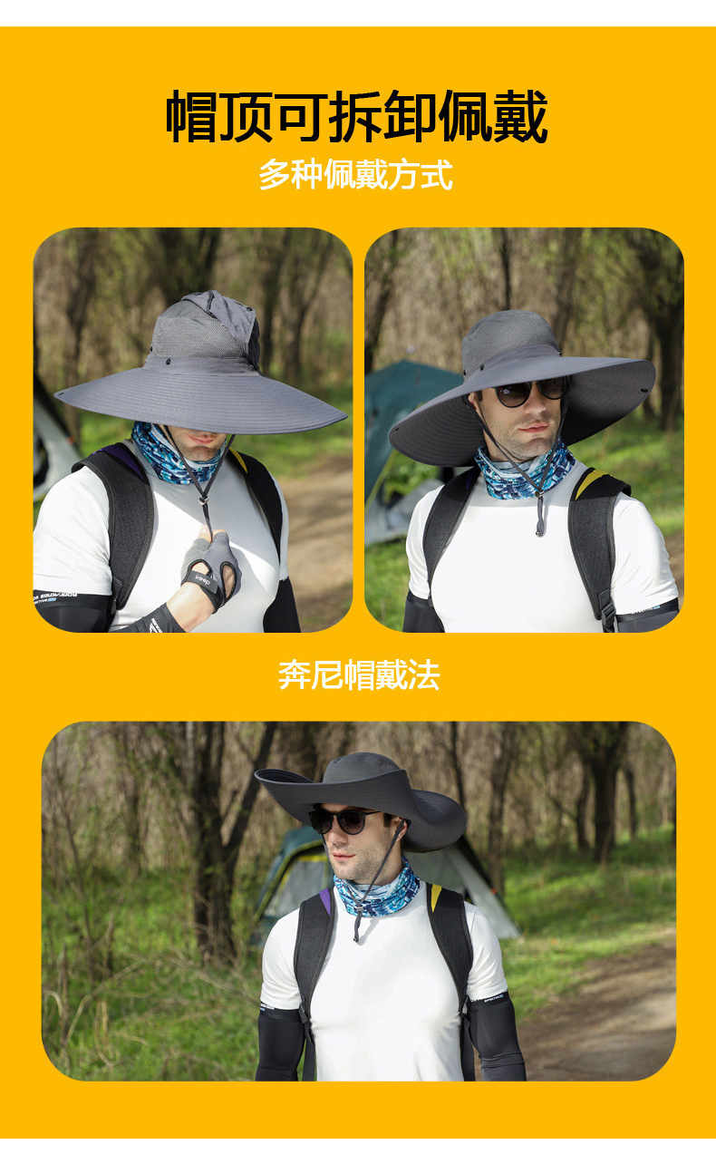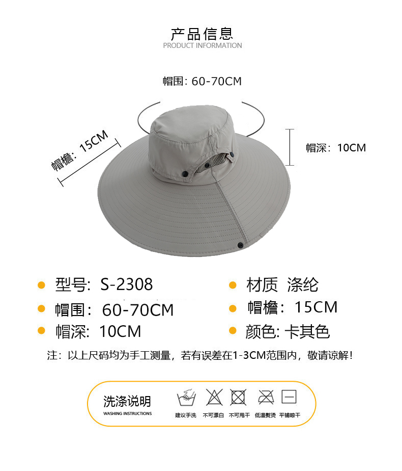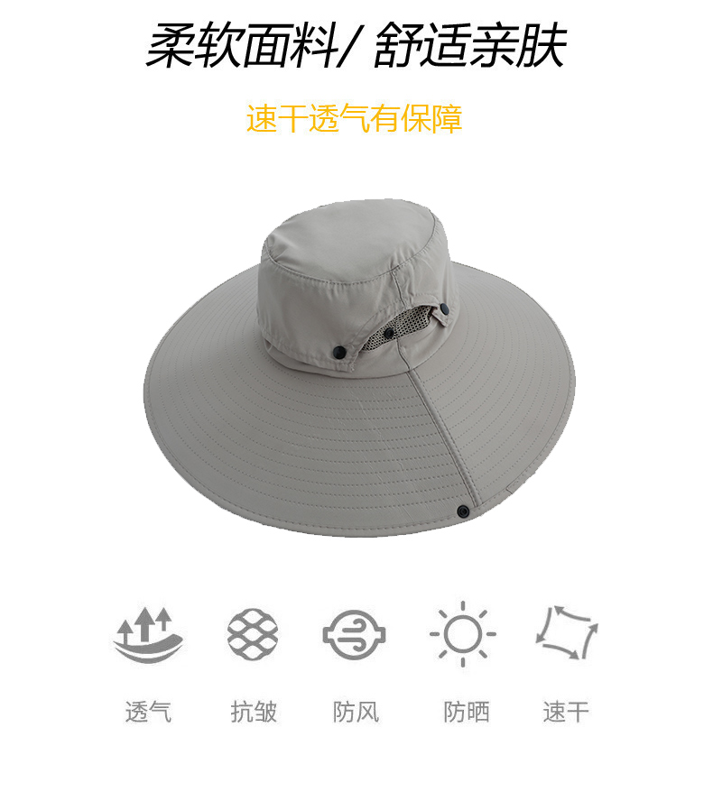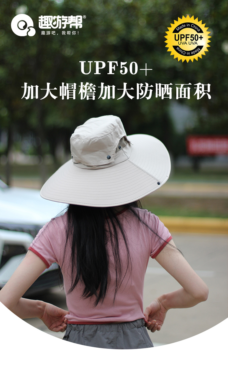 商品名称:趣游帮超大檐帽顶可拆卸防晒帽-卡其色S-2308