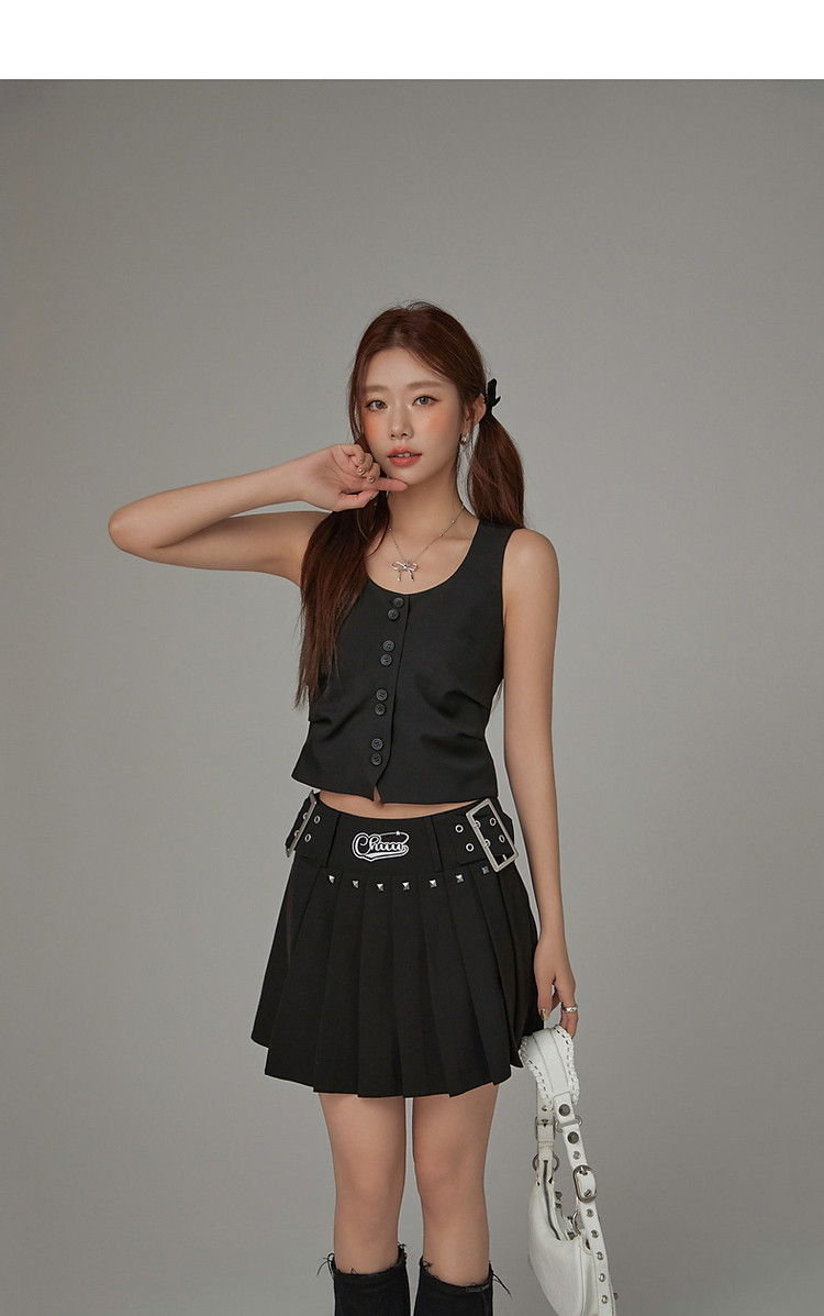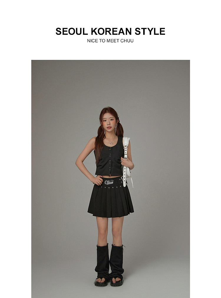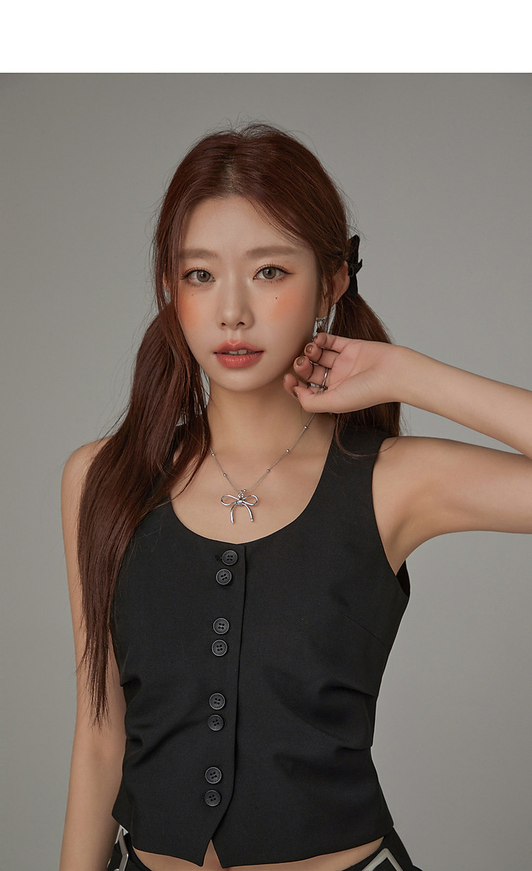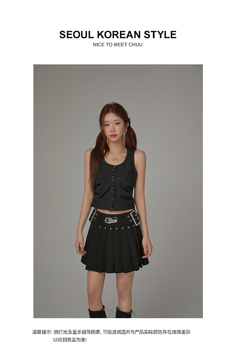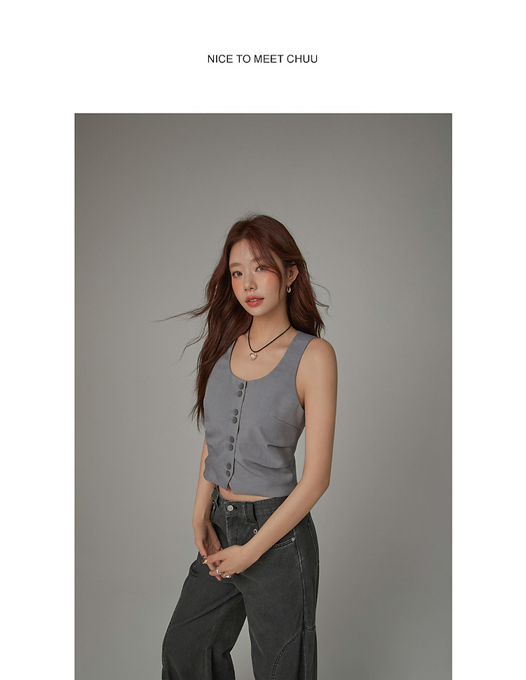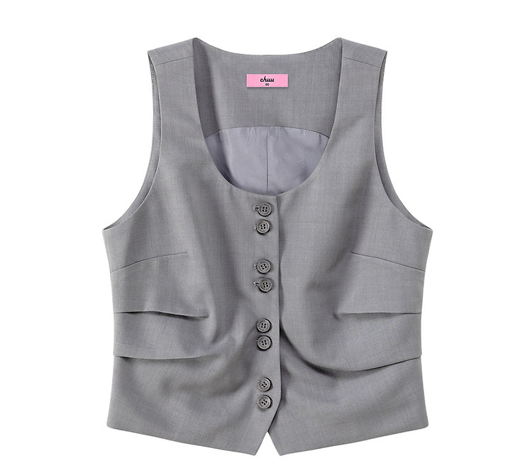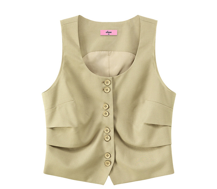 商品名称:褶皱无袖马甲女2025夏单排扣西装马夹外穿开叉小背心 886739