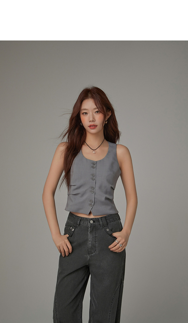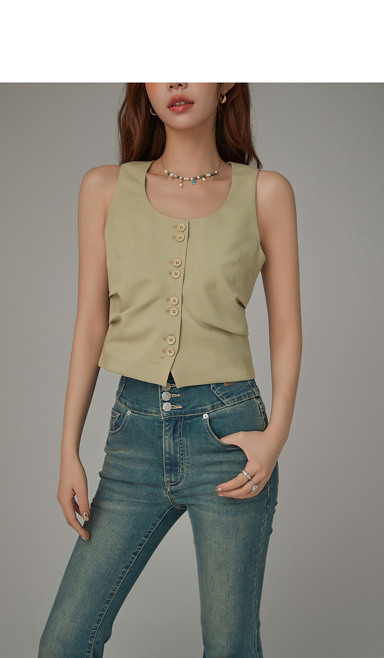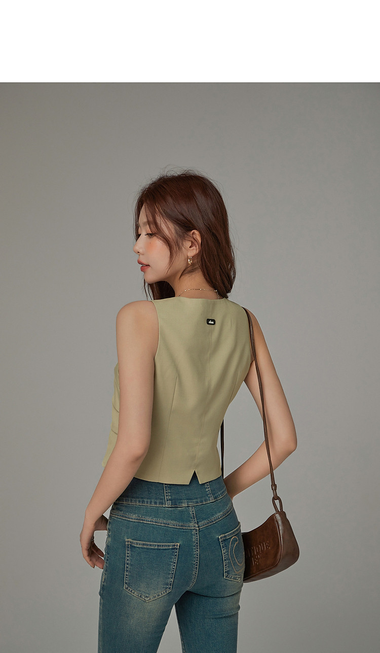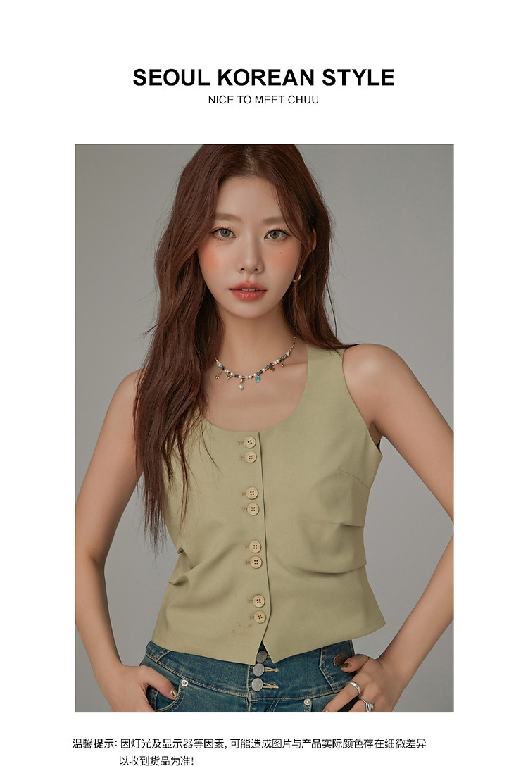 褶皱无袖马甲女2025夏单排扣西装马夹外穿开叉小背心 886739