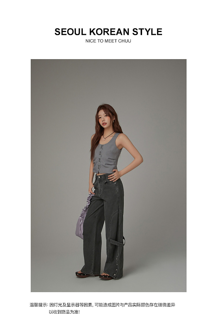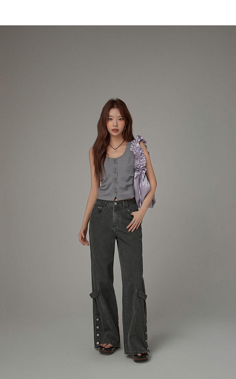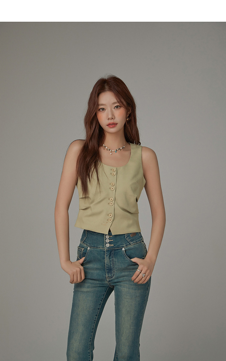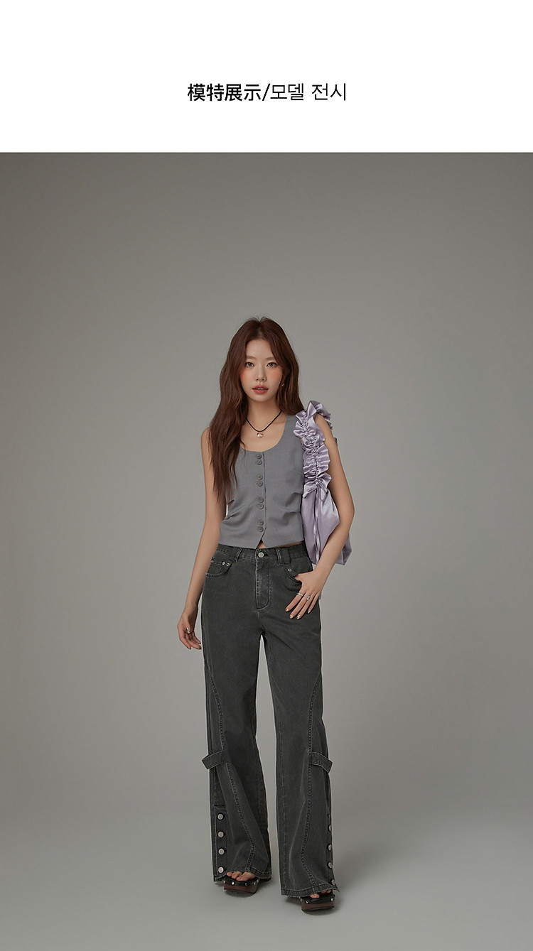 褶皱无袖马甲女2025夏单排扣西装马夹外穿开叉小背心 886739