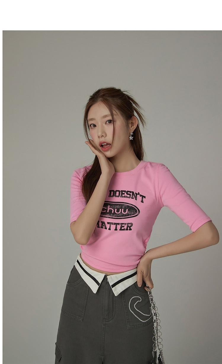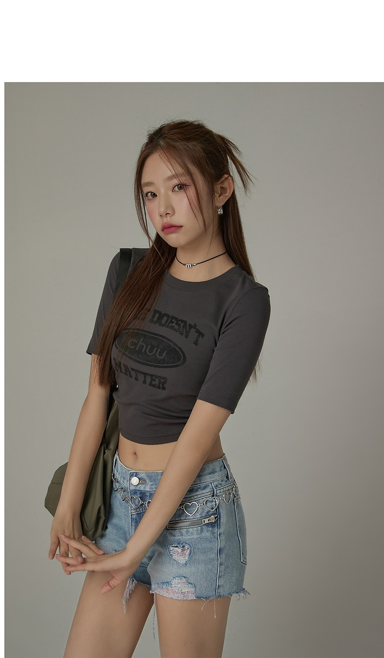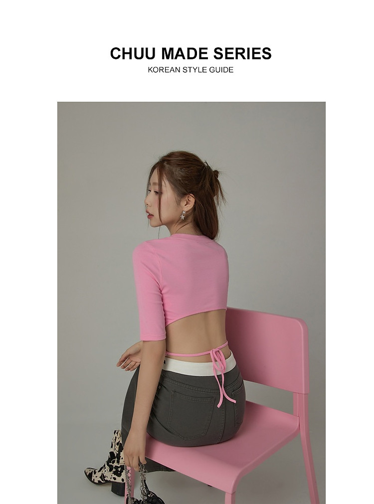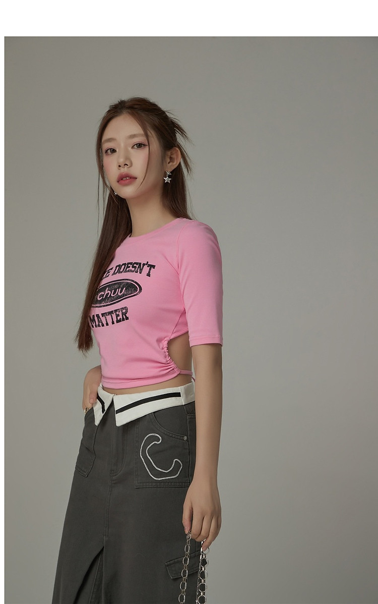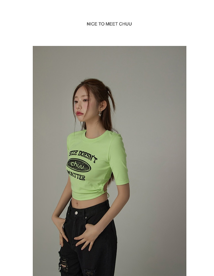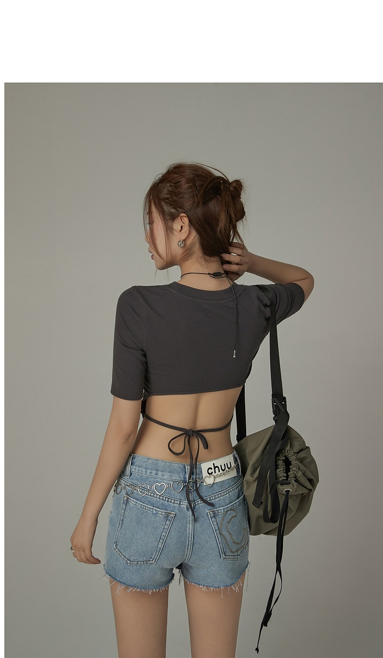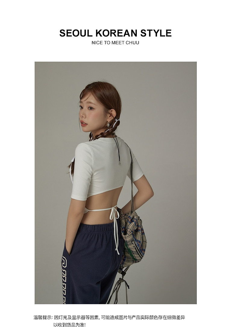 商品名称:印花T恤女2025春夏小个子辣妹露背系带短款上衣 358995