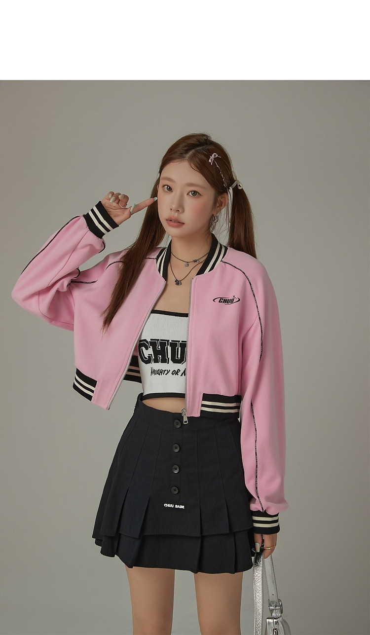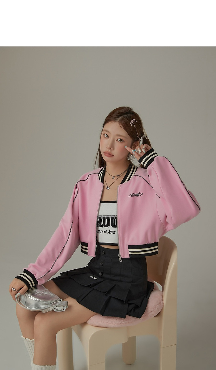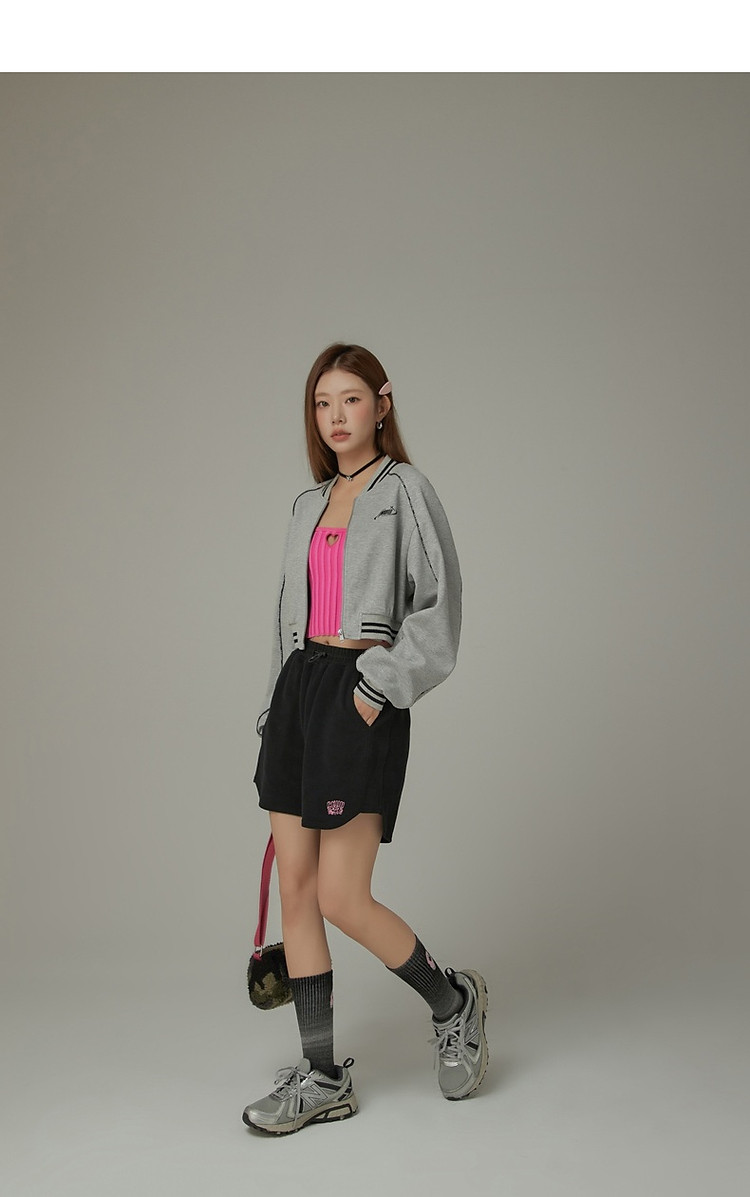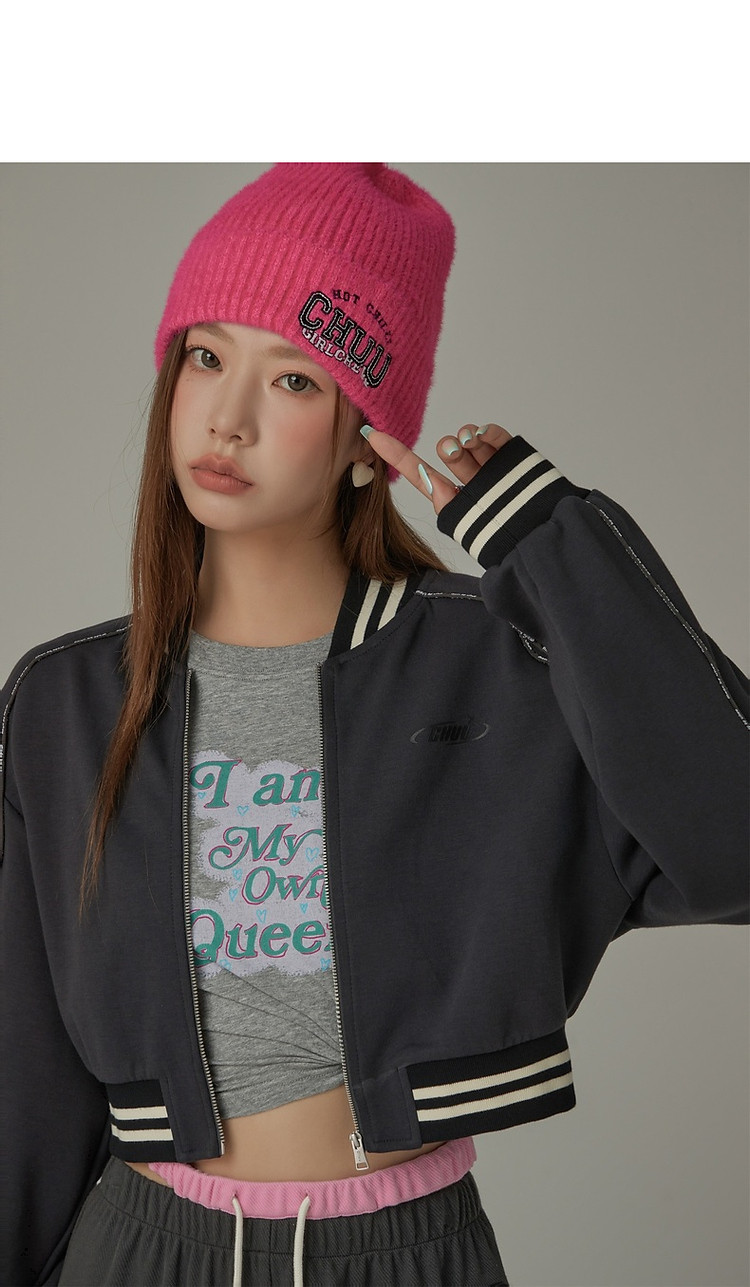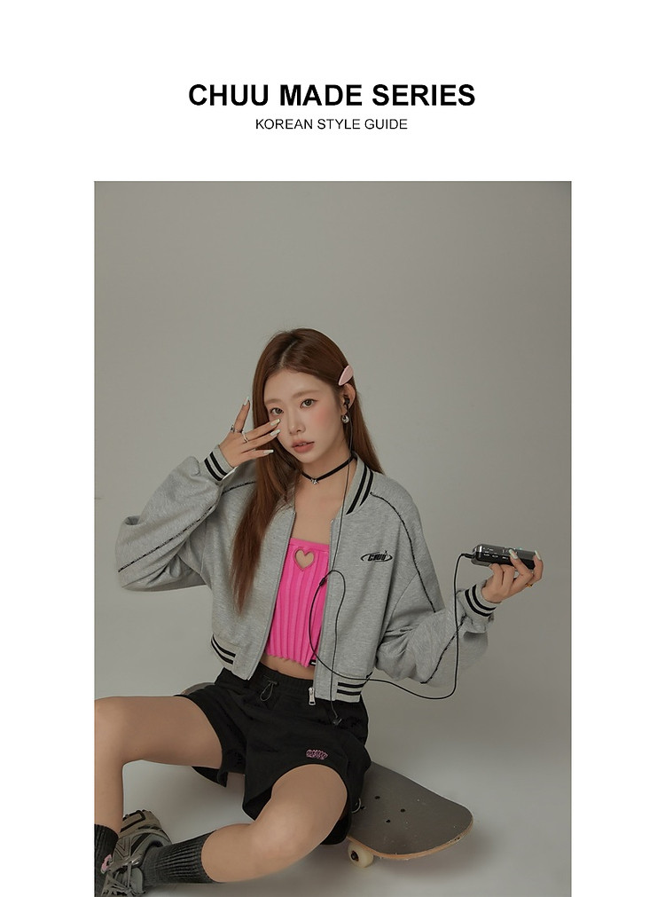 CHUU学院风外套女春字母印花条纹休闲短裤上衣 456147