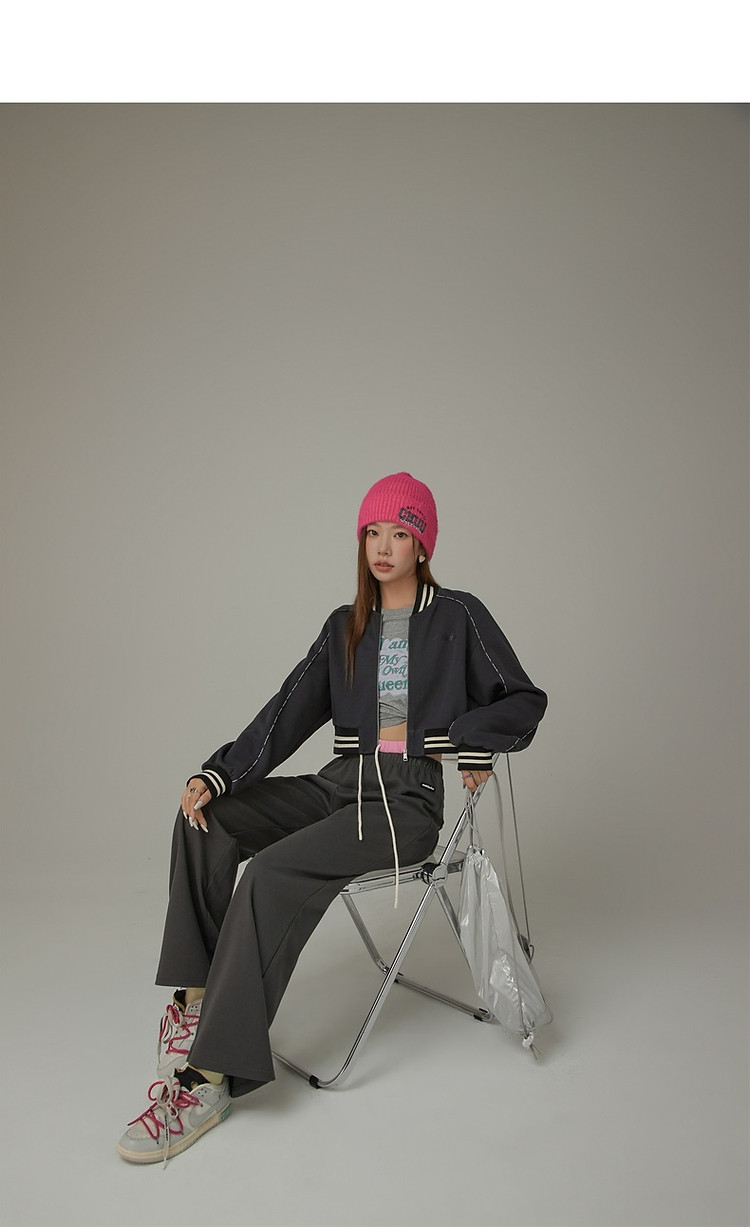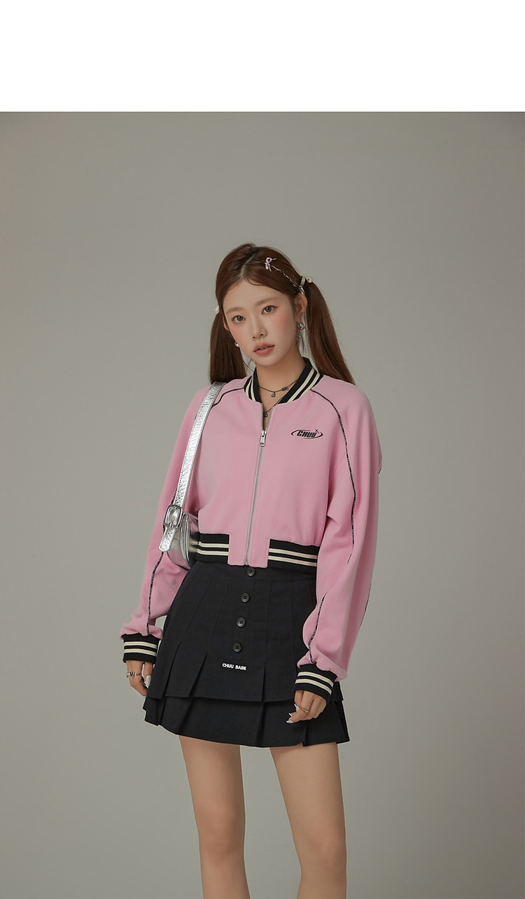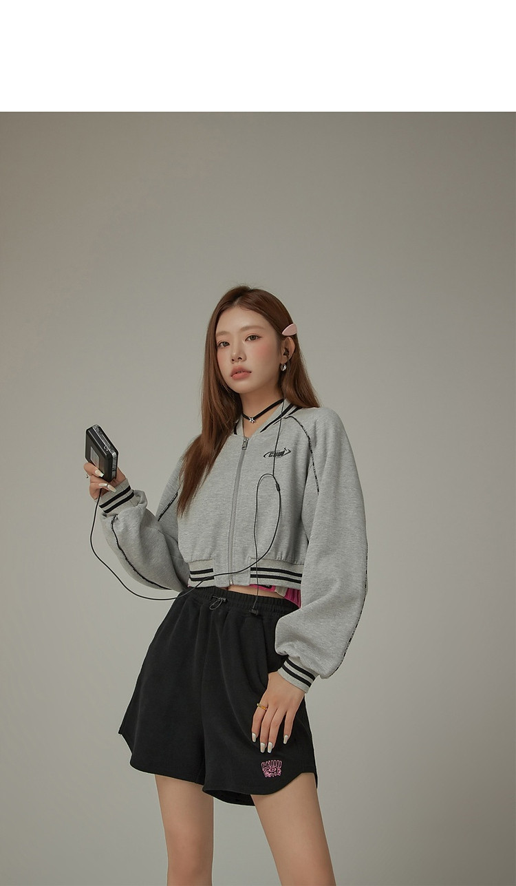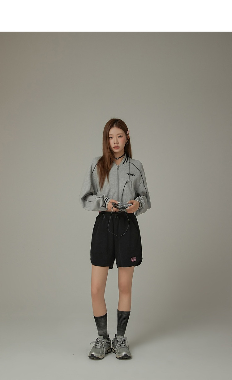 CHUU学院风外套女春字母印花条纹休闲短裤上衣 456147