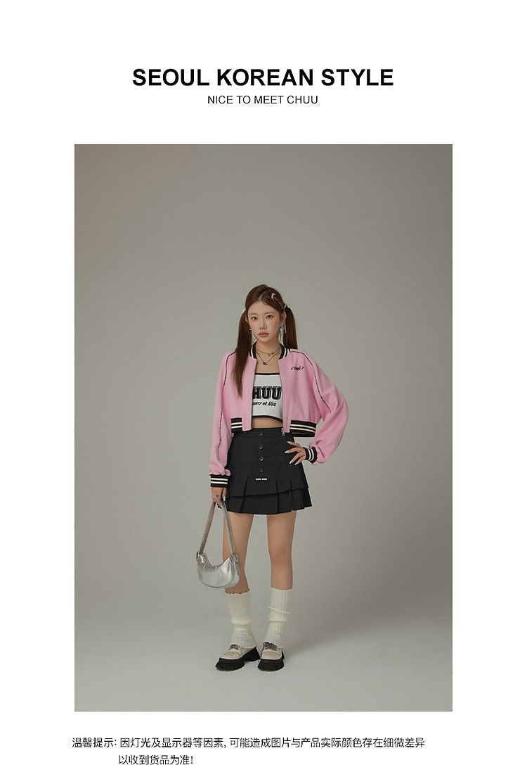 商品名称:CHUU学院风外套女春字母印花条纹休闲短裤上衣 456147