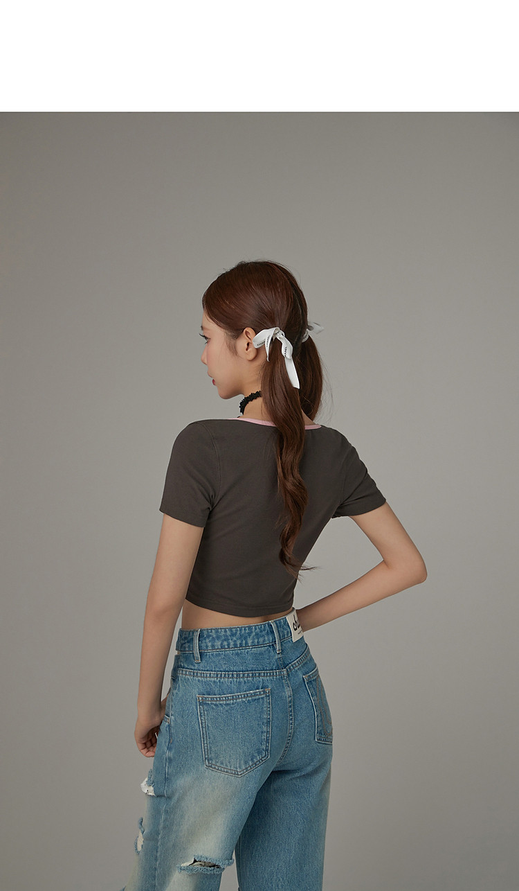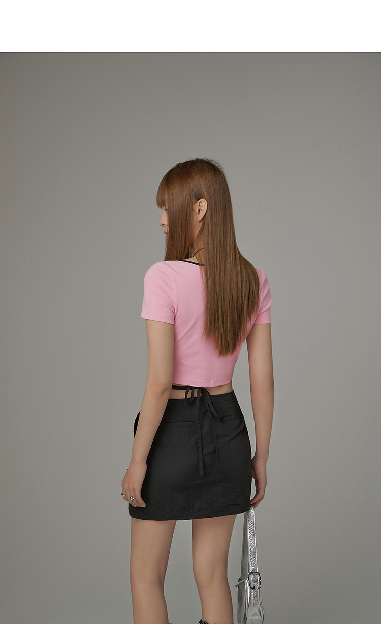 商品名称:字母星星印花正肩T恤女2025夏抽绳蝴蝶结露脐短袖 336915