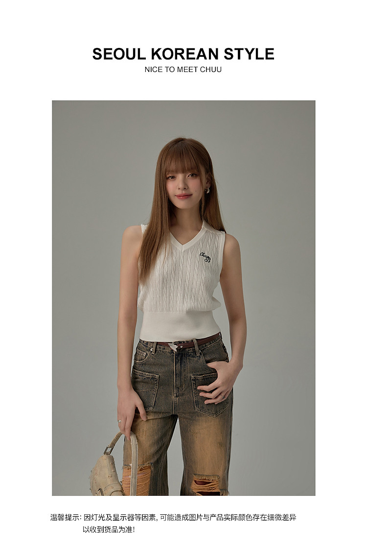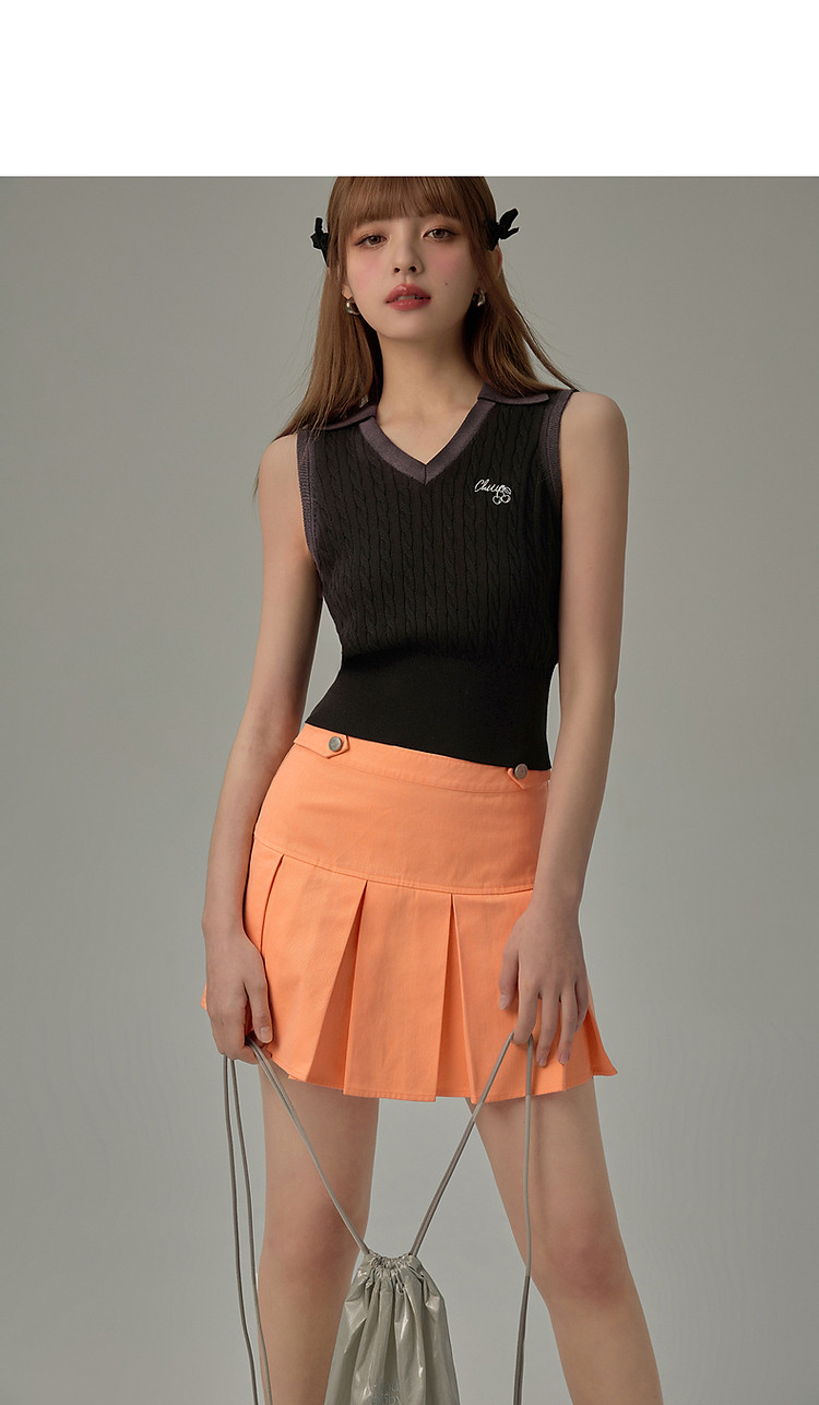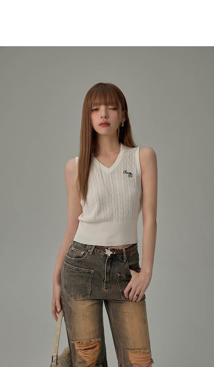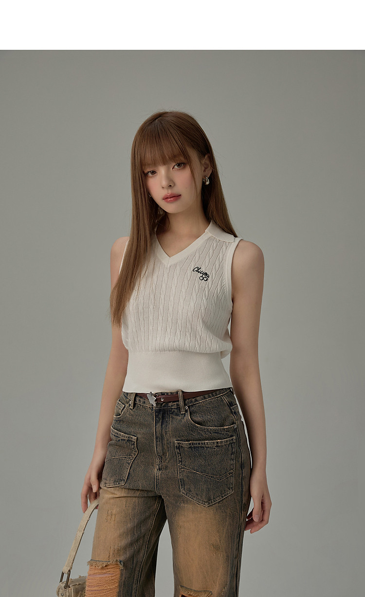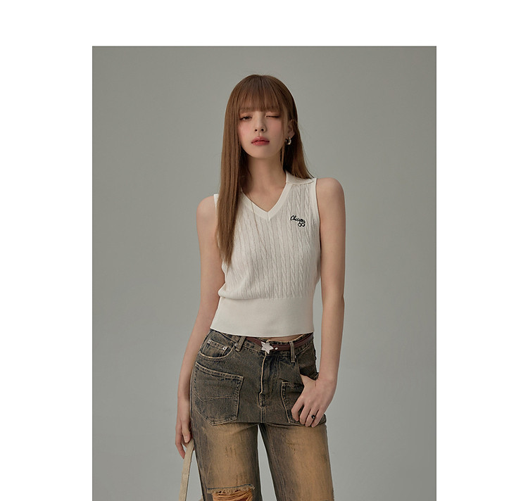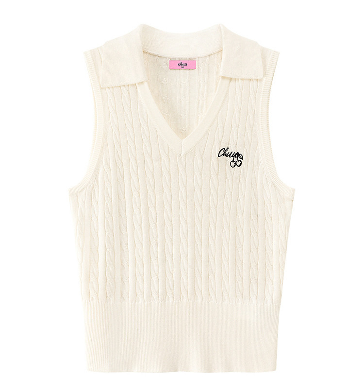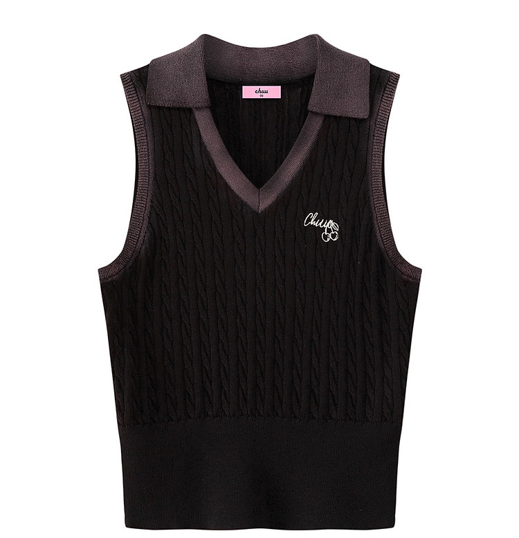 商品名称:刺绣字母针织背心女2025夏撞色翻领基础学院吊带上衣薄 359955