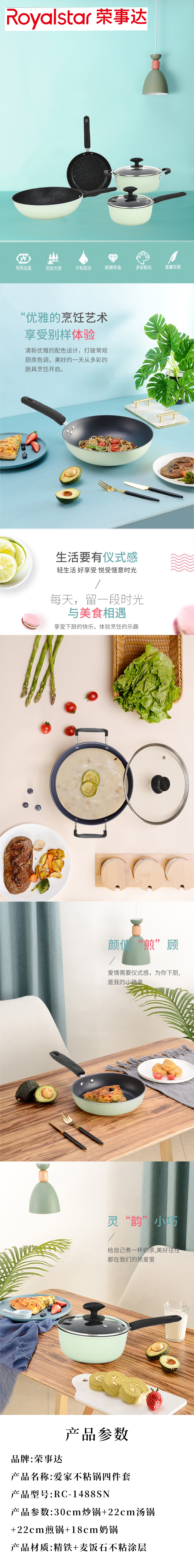 商品名称:Royalstar/荣事达爱家不粘锅具四件套RC-1488SN