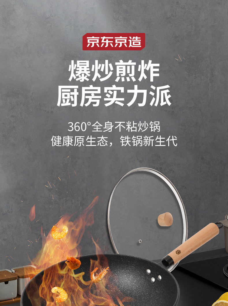 京东京造32cm精铁麦饭石色不粘炒锅JM-CN2306001