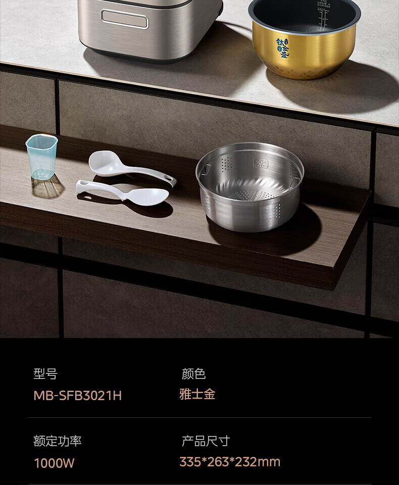 商品名称:Midea/美的3升雅士金电饭煲MB-SFB3021H