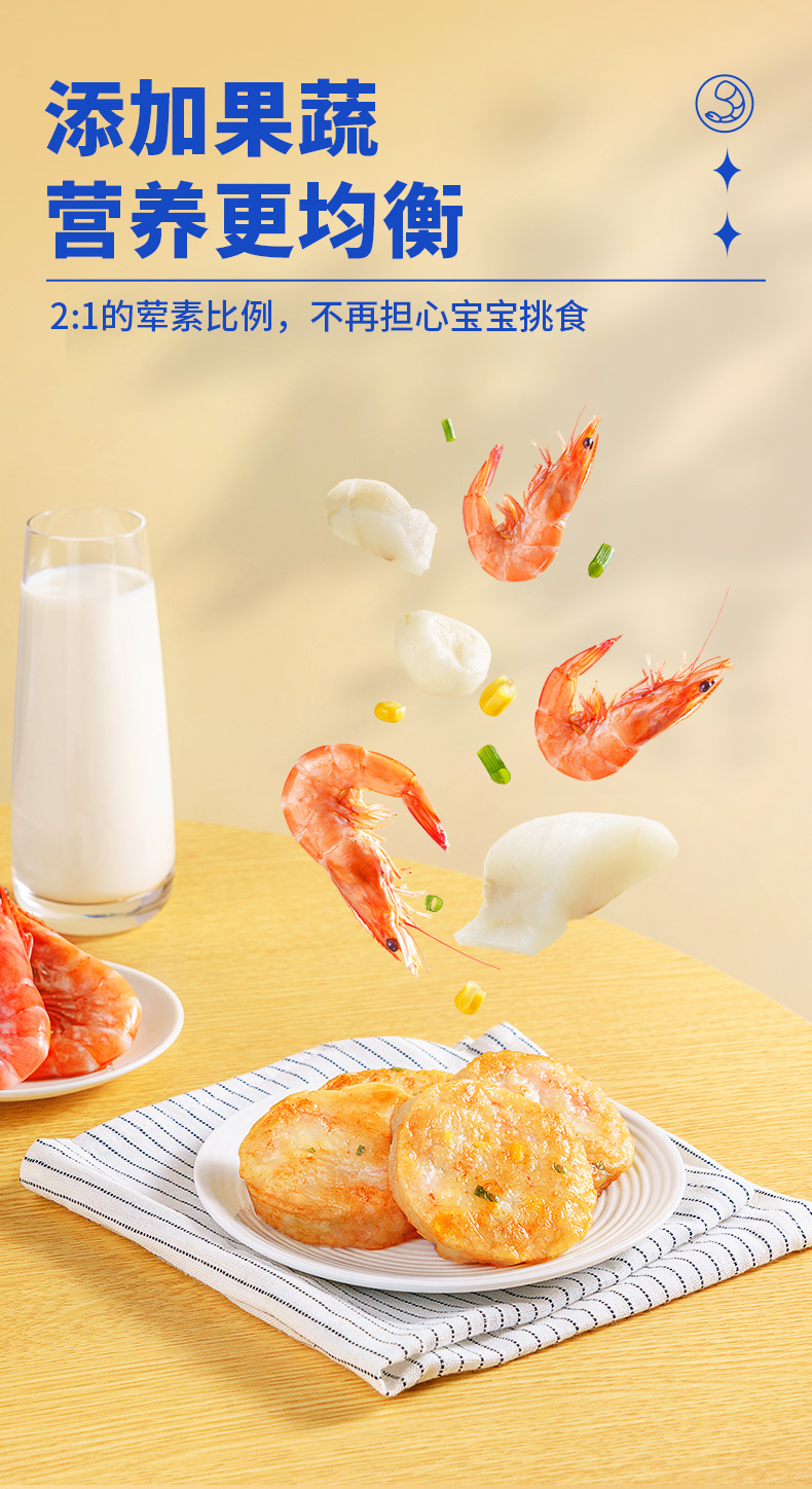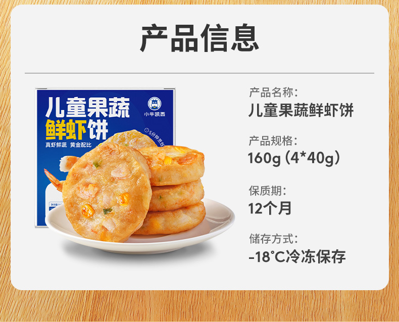 商品名称:【京东/顺丰配送】小牛凯西果蔬儿童海鲜虾饼160g*5盒