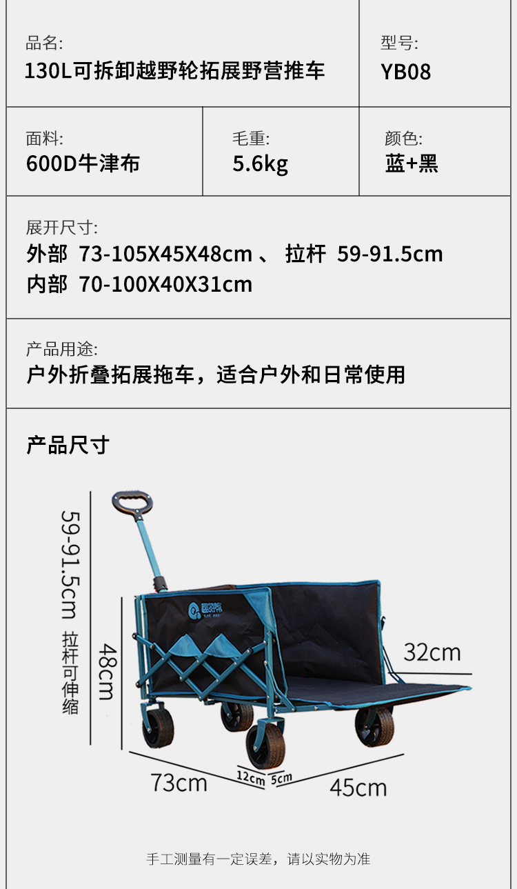 商品名称:趣游帮130升可拆卸越野轮拓展野营推车YB08