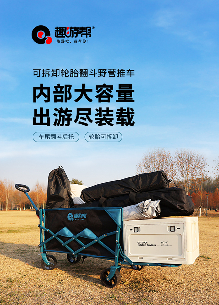 趣游帮130升可拆卸越野轮拓展野营推车YB08
